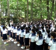 6年生は7月中旬に軽井沢にて3泊4日の共同自治の生活を行います。三泉寮は豊明小学校創立と同年に夏季寮として開設され、戦時中は軽井沢分教場として集団疎開にも使用しました。小学校最終学年として豊かな自然の中で自分を振り返り、そして先生や友達と過ごす生活は、小学校時代の何よりの思い出となります。