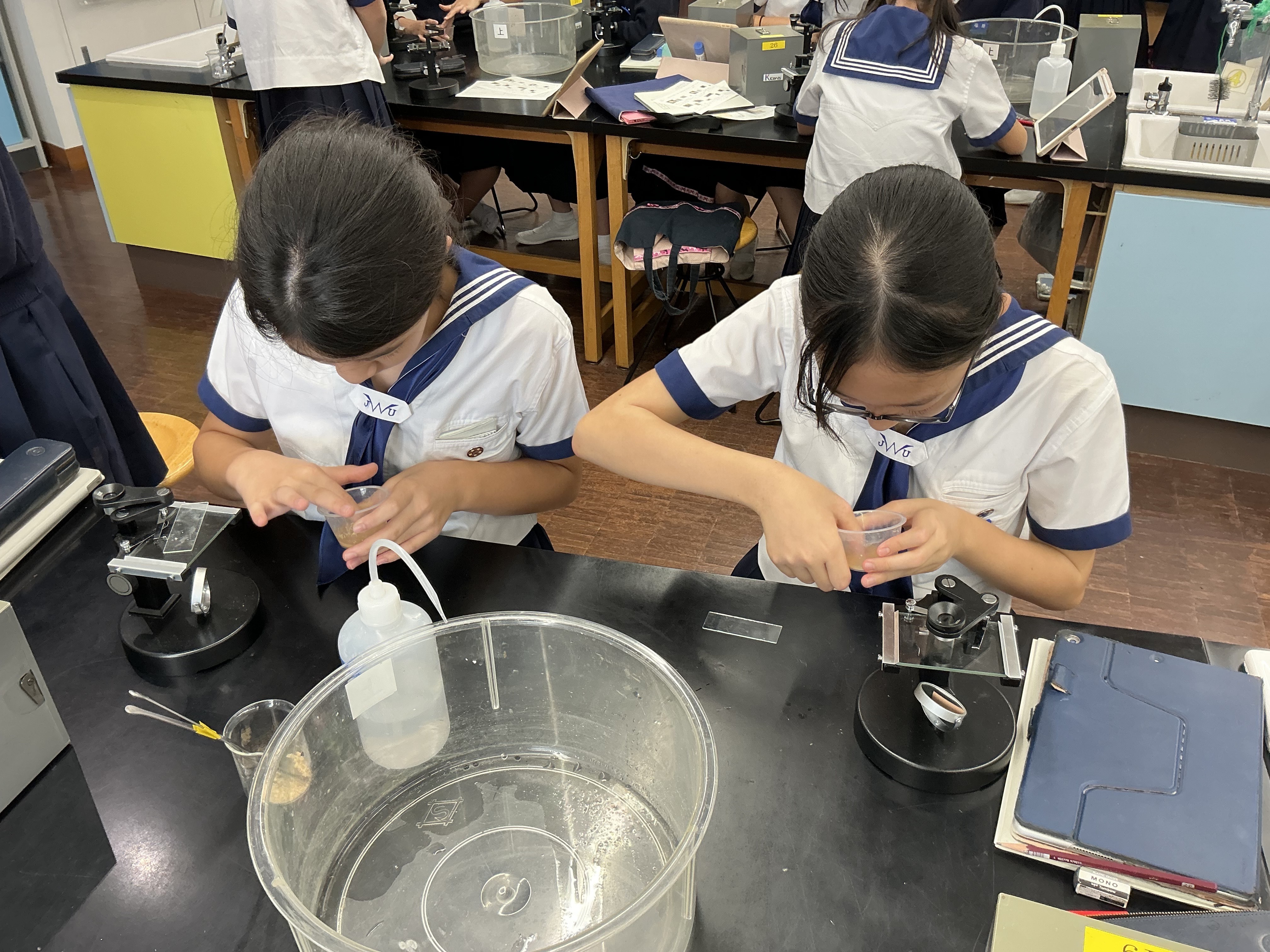 火山の学習の一環で、火山灰に含まれている鉱物の観察を行いました。