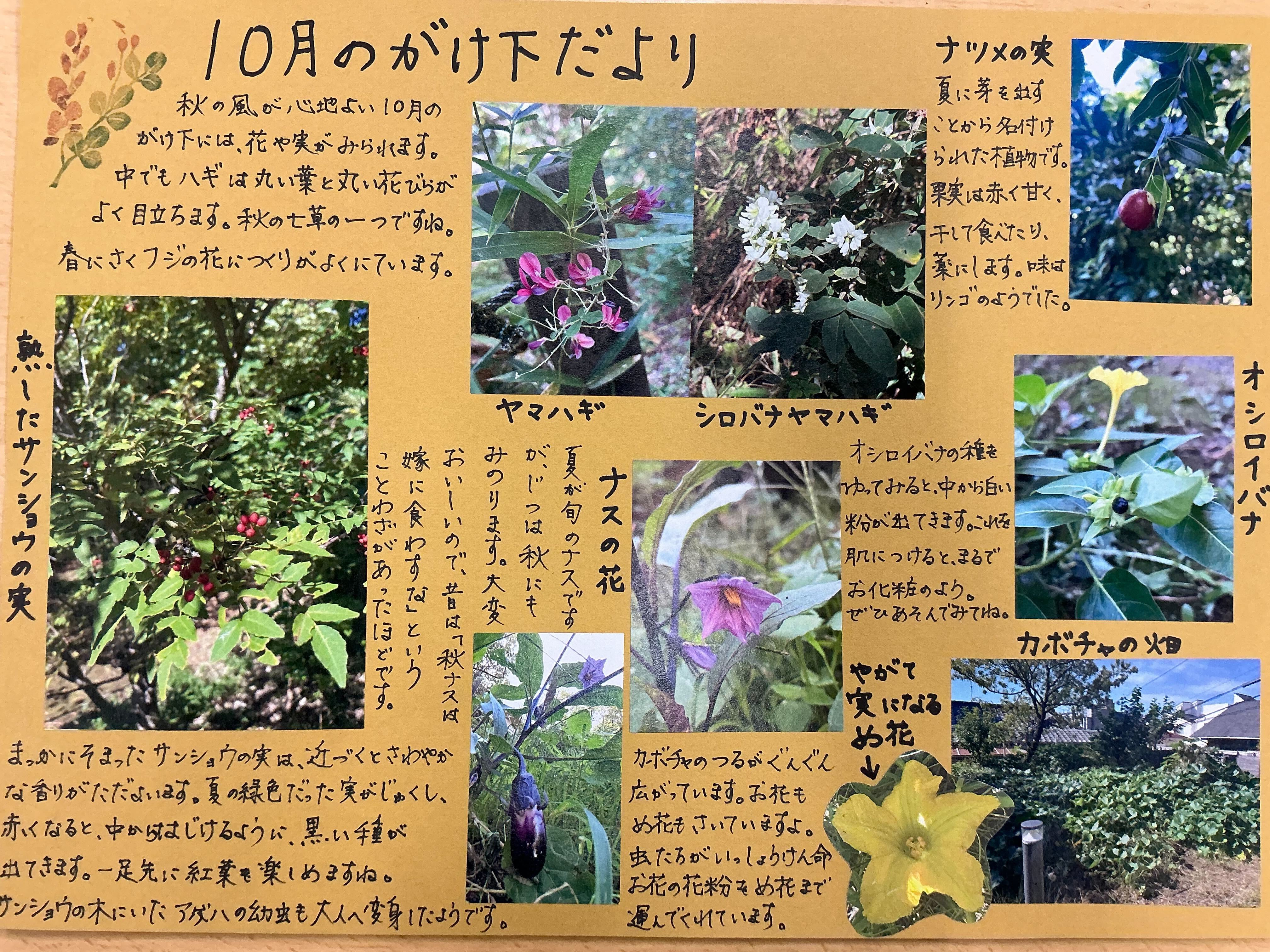 毎月、がけ下教材園の様子を植物中心に、手書きで1枚にまとめて紹介しています。