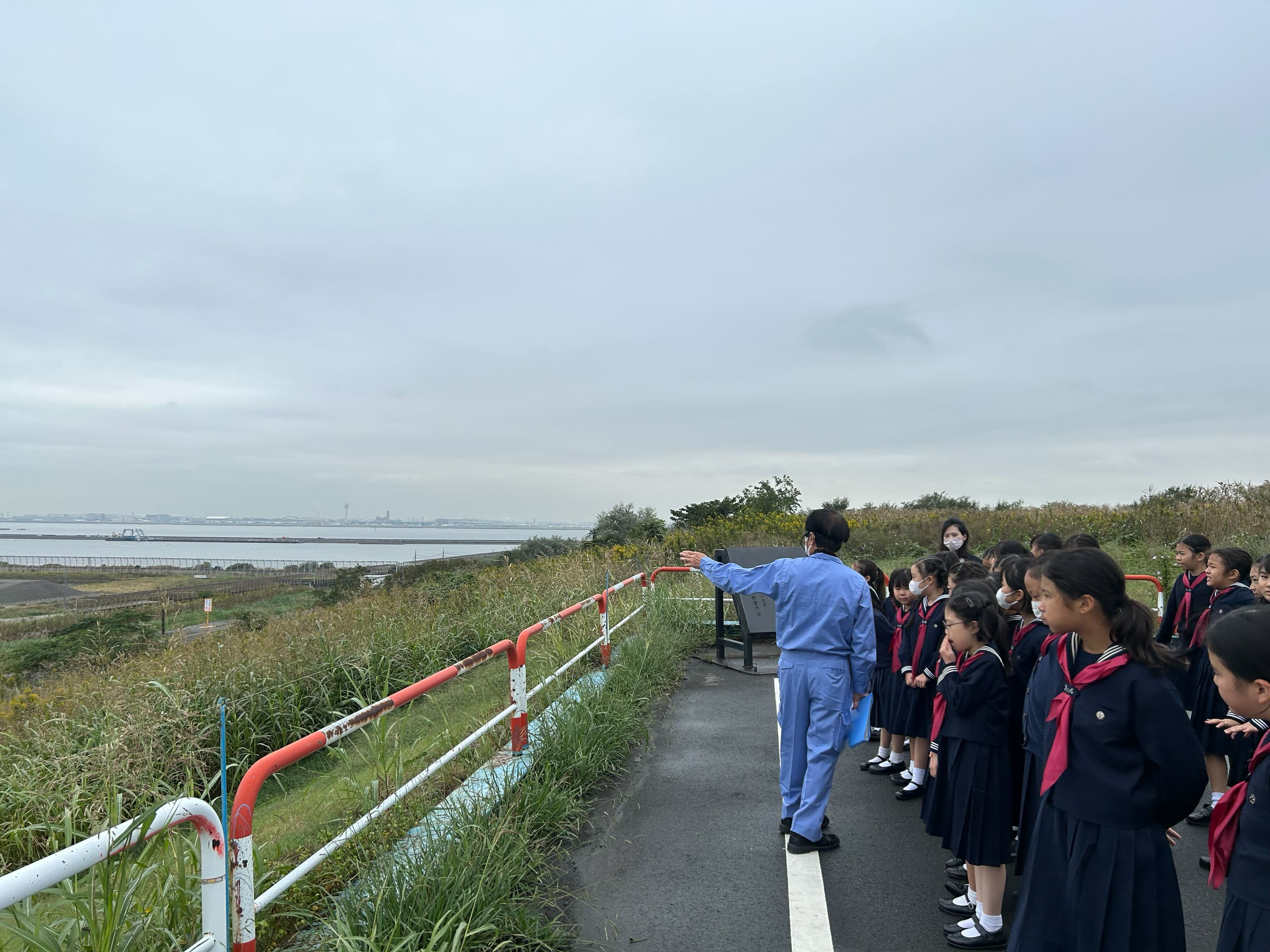 4年生は、社会科「ごみの学習」の一環として、有明清掃工場および中央防波堤埋立処分場を見学しました。家庭から出されるごみが、どのような中間処理を経て最終的に埋立処分場に運ばれるのか、その一連の流れを実際に見て学びました。
