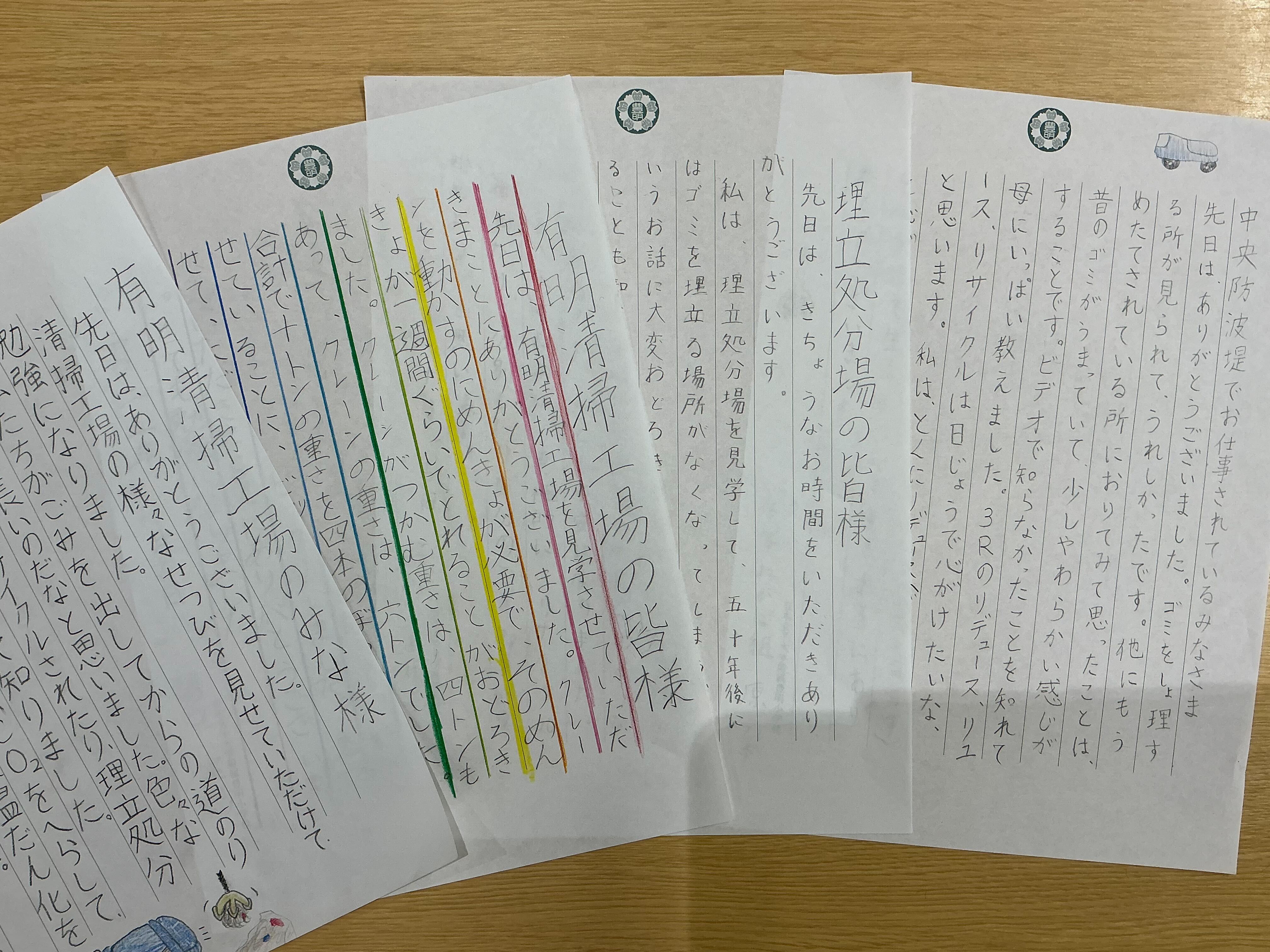 また、「現在の埋立処分が続けられるのは、あと約50年」というお話を伺い、実際に埋立地に立った子どもたちは、環境問題や自分たちにできることについて深く考える貴重な時間となりました。