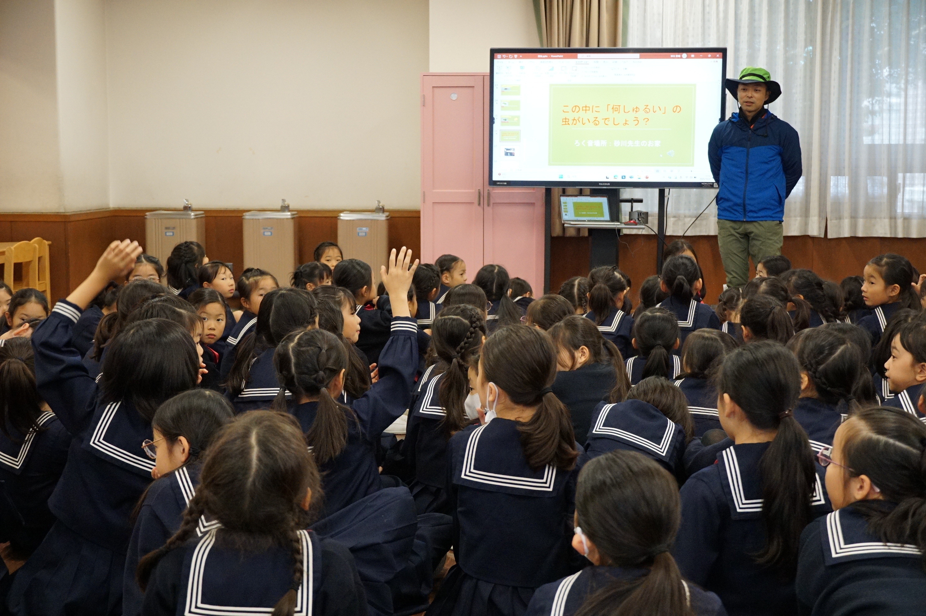 2年生の生活科で「秋の鳴く虫」の学習が始まりました。今回は、理科の砂川先生が授業をしてくださいました。