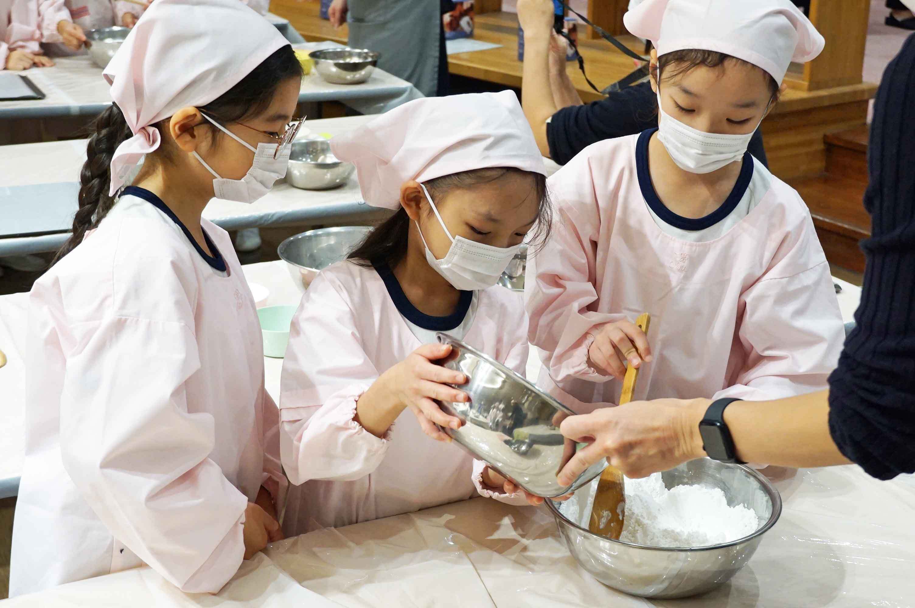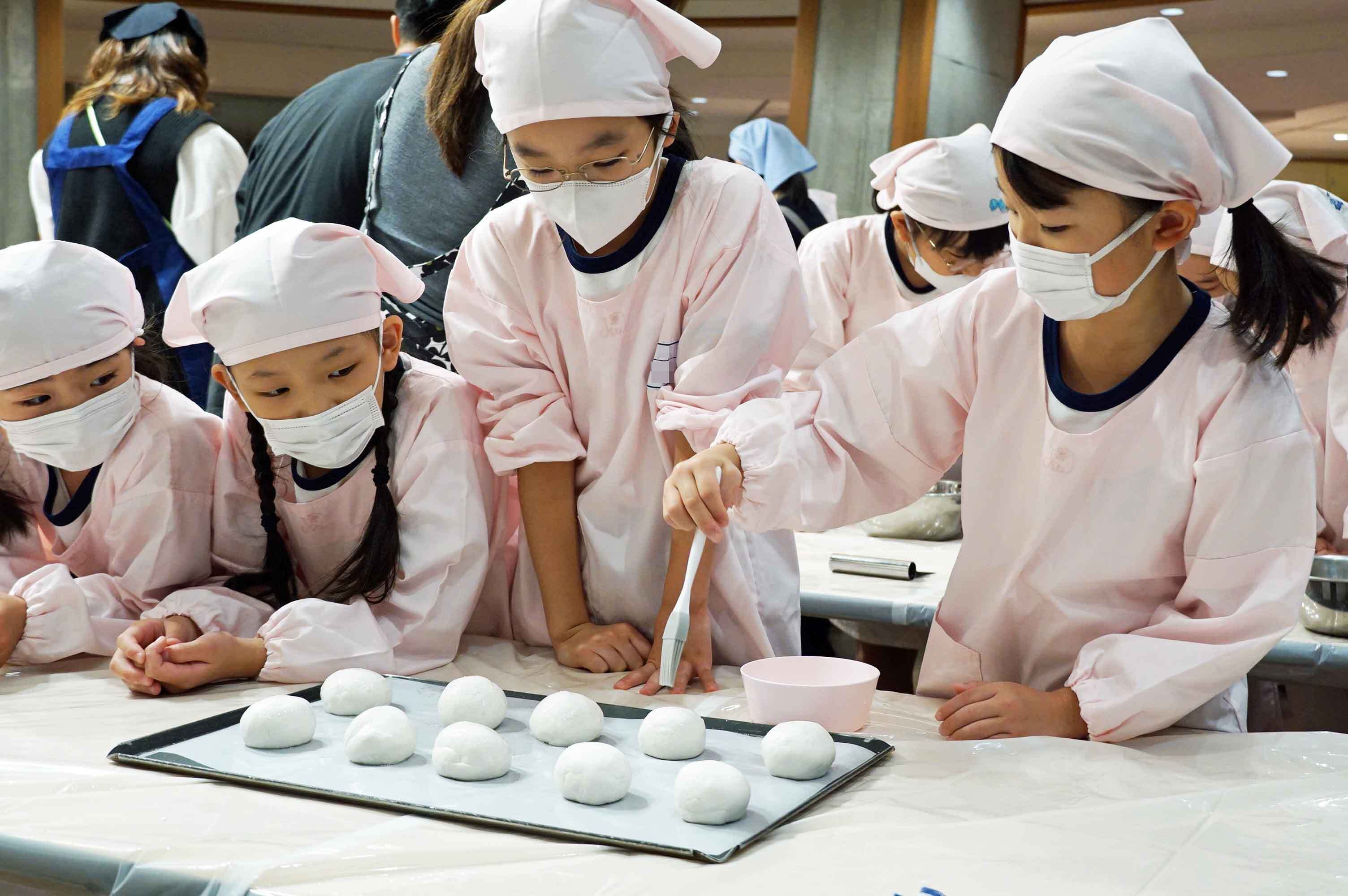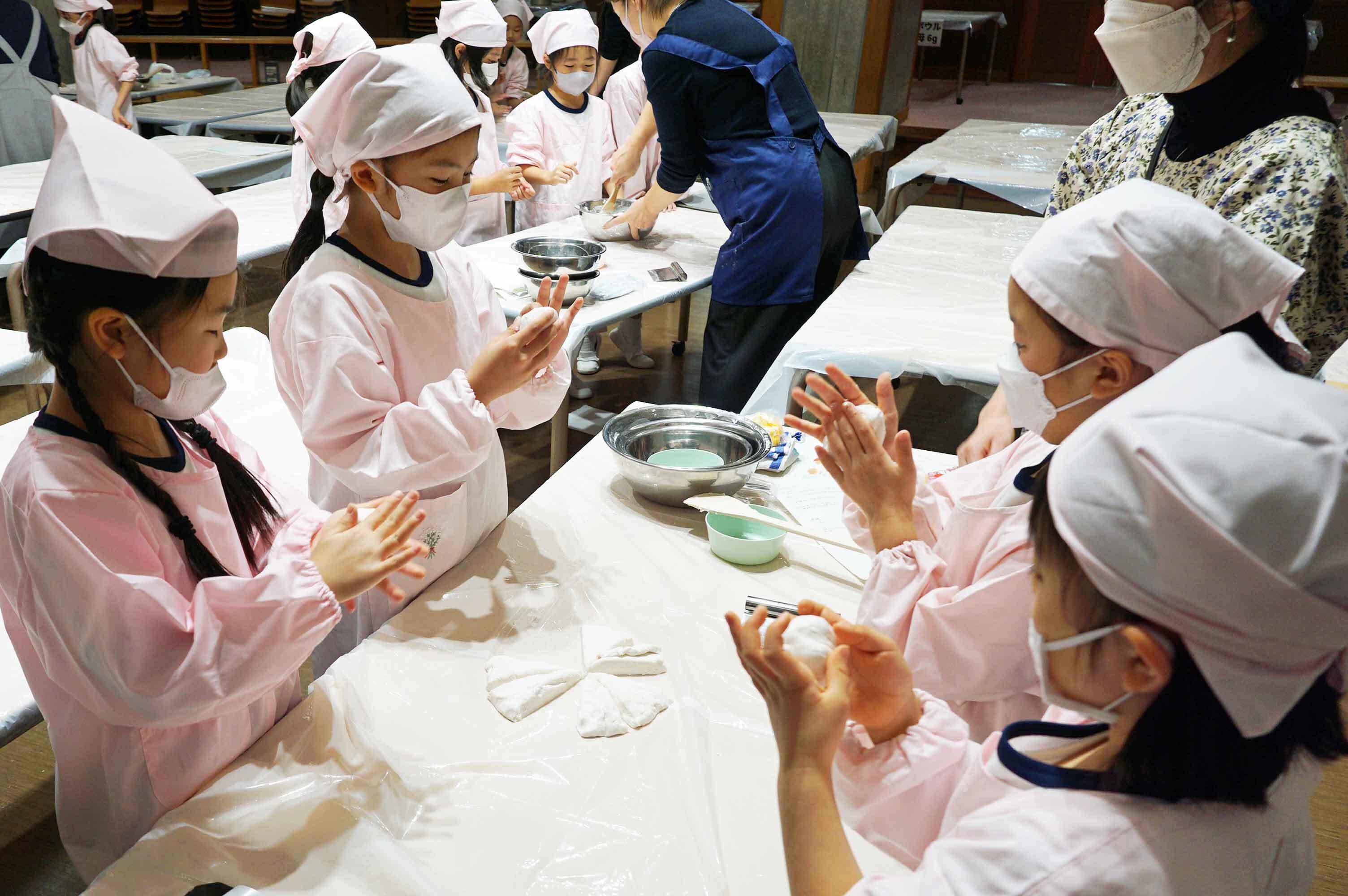 保護者の皆様にもお手伝いいただき、子どもたちは材料を混ぜたり、こねたり、分けたり、丸めたり。みんな笑顔で、チームワークよく作業していました。