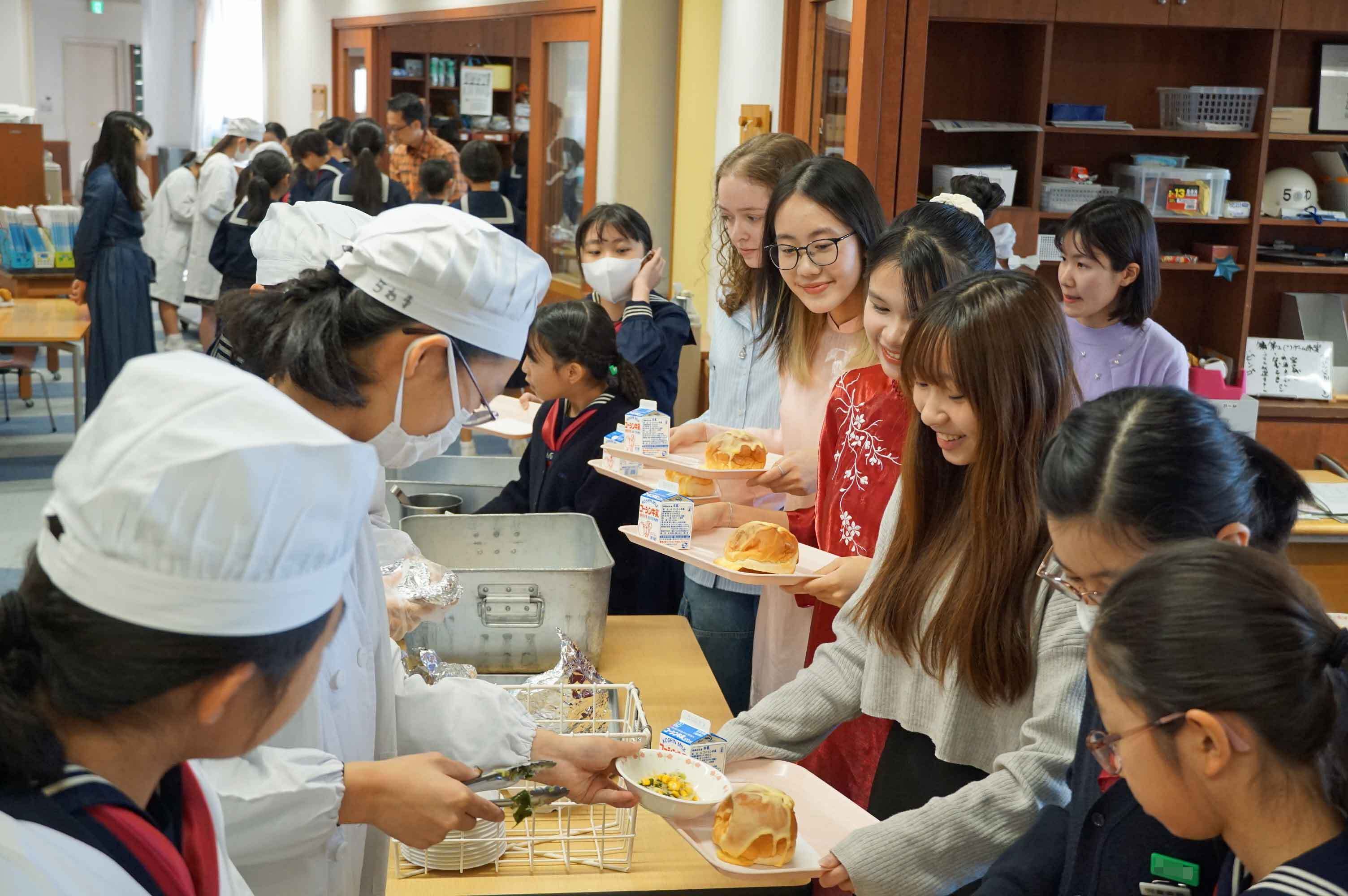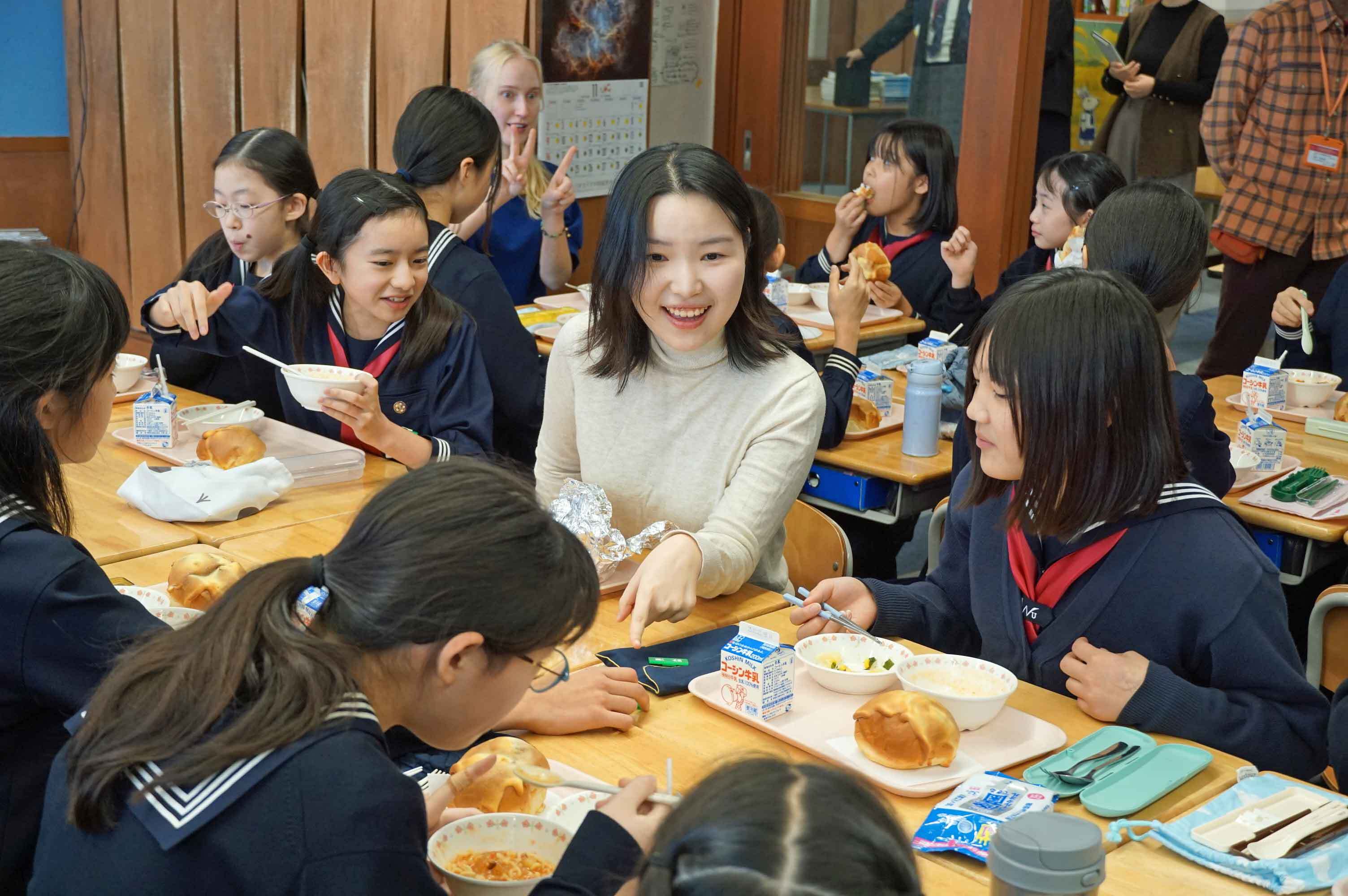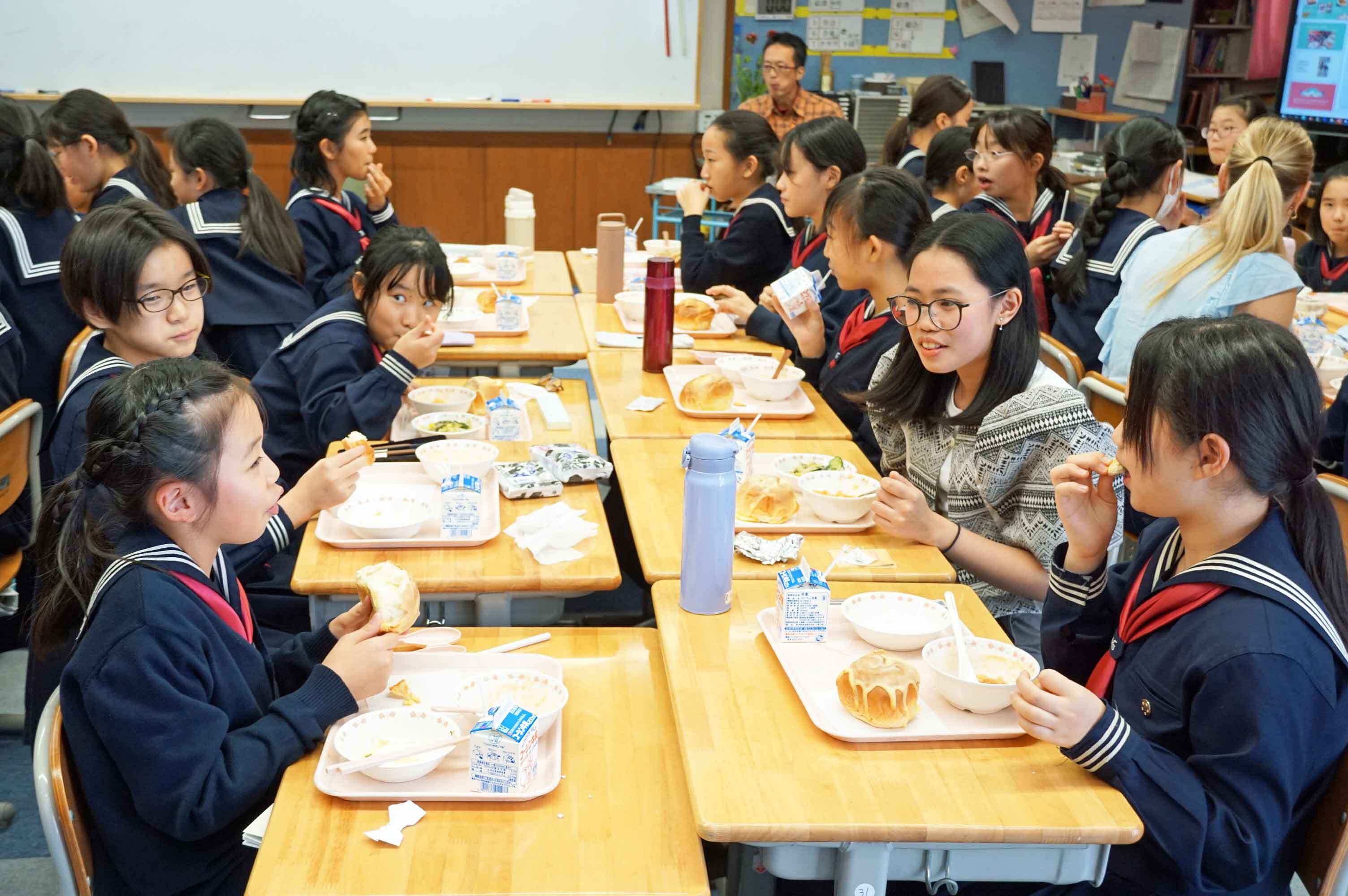 そのあと給食を一緒にいただいたり、みんなでお姉さんたちを囲んでお話をしたりと、楽しく心あたたまる交流になりました。