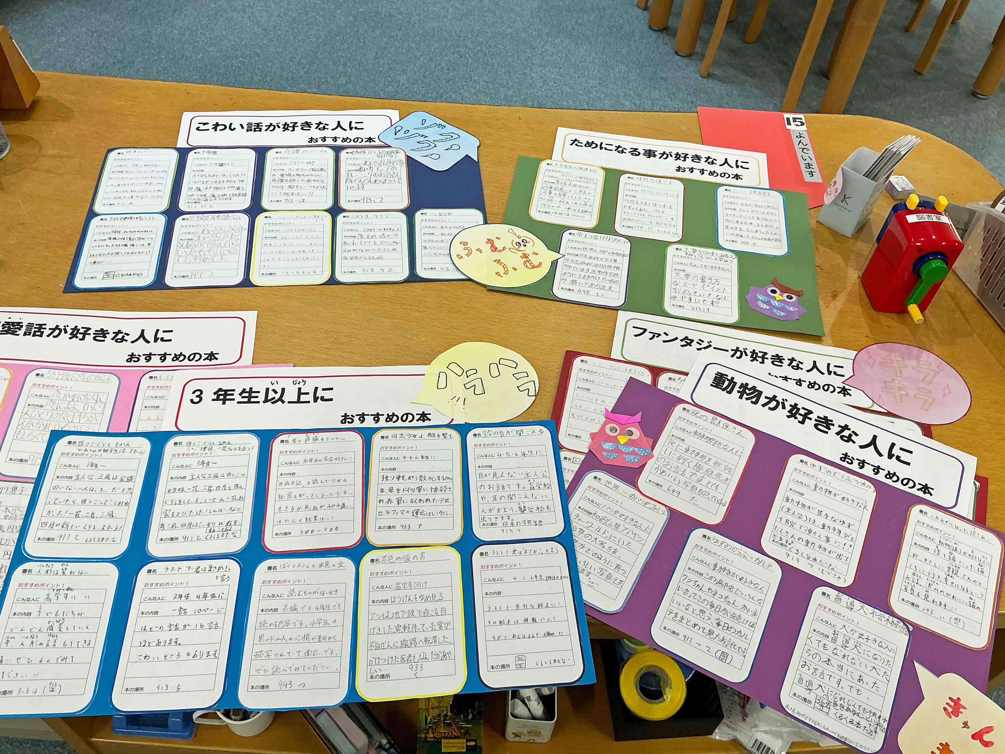 「おすすめを見て借りました」と言いにきてくれる子がいて、「うれしい!」と笑顔の図書部です。