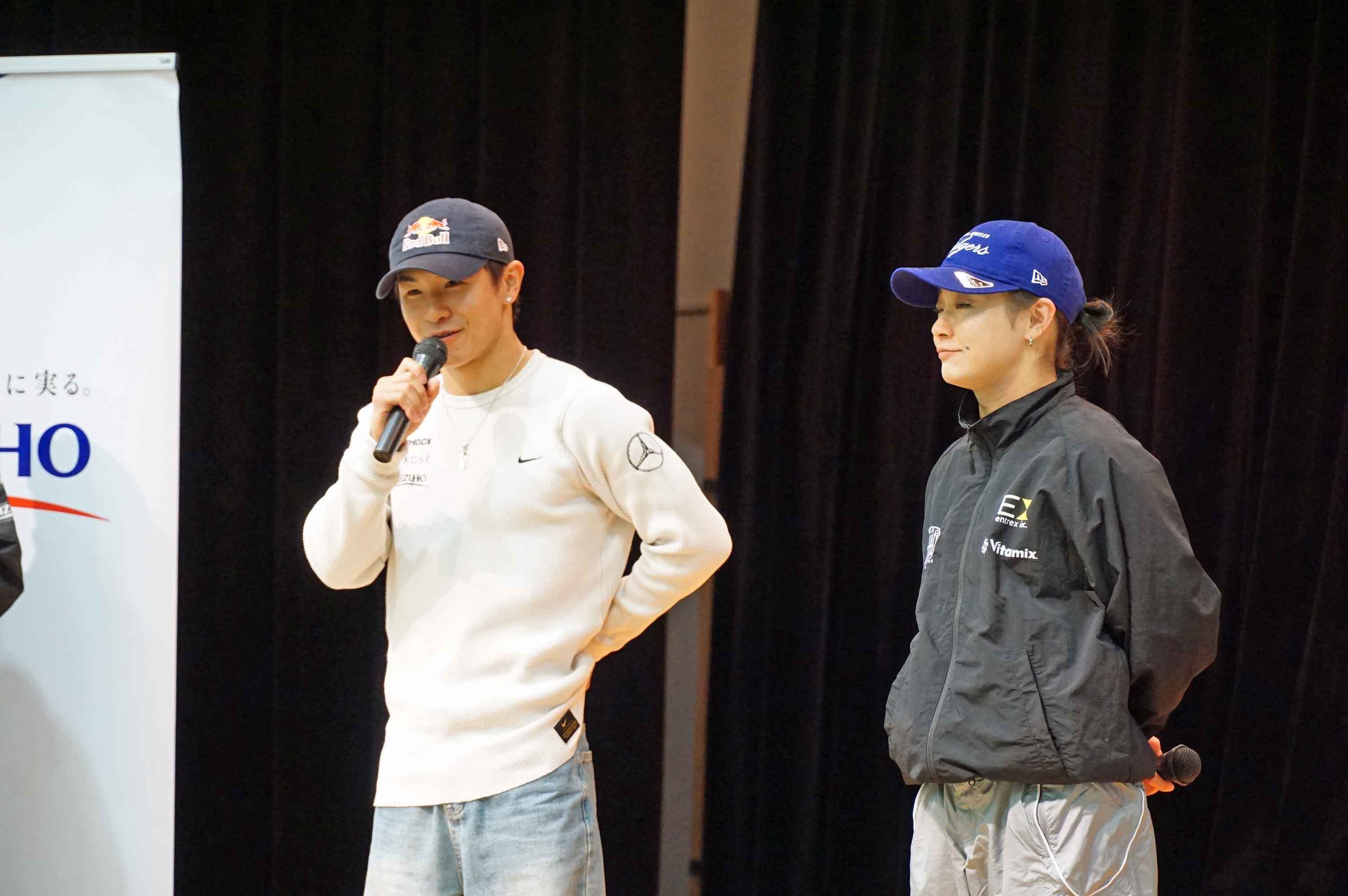 第2部のブレイキン体験会には、Shigekix選手のお姉さんのAYANE選手(半井彩弥選手)も登場。AYANE選手はShigekix選手と共に今年の全日本選手権で優勝されています。