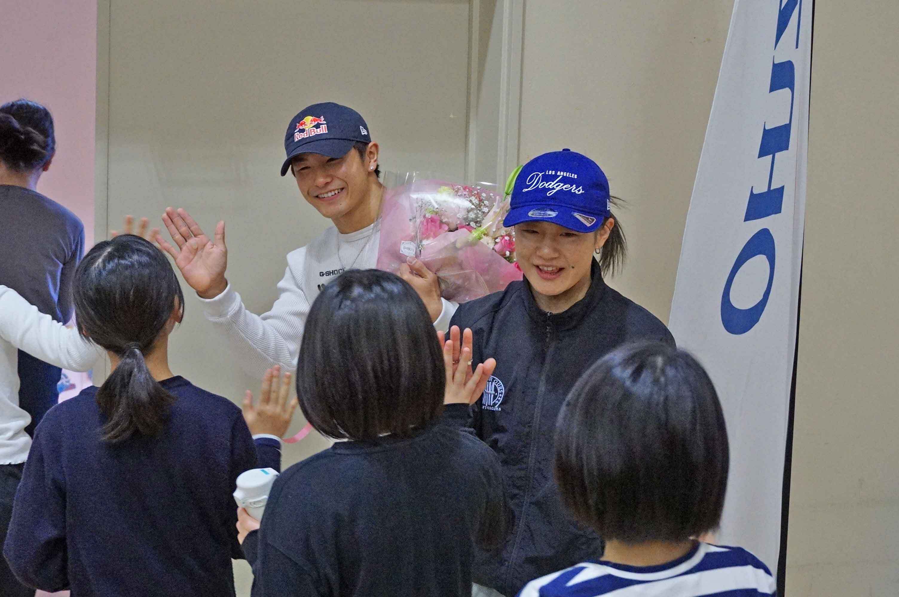 最後にみんなで記念撮影。会場出口ではShigekix選手とAYANE選手が全員と一人ひとりハイタッチをして見送ってくださいました。