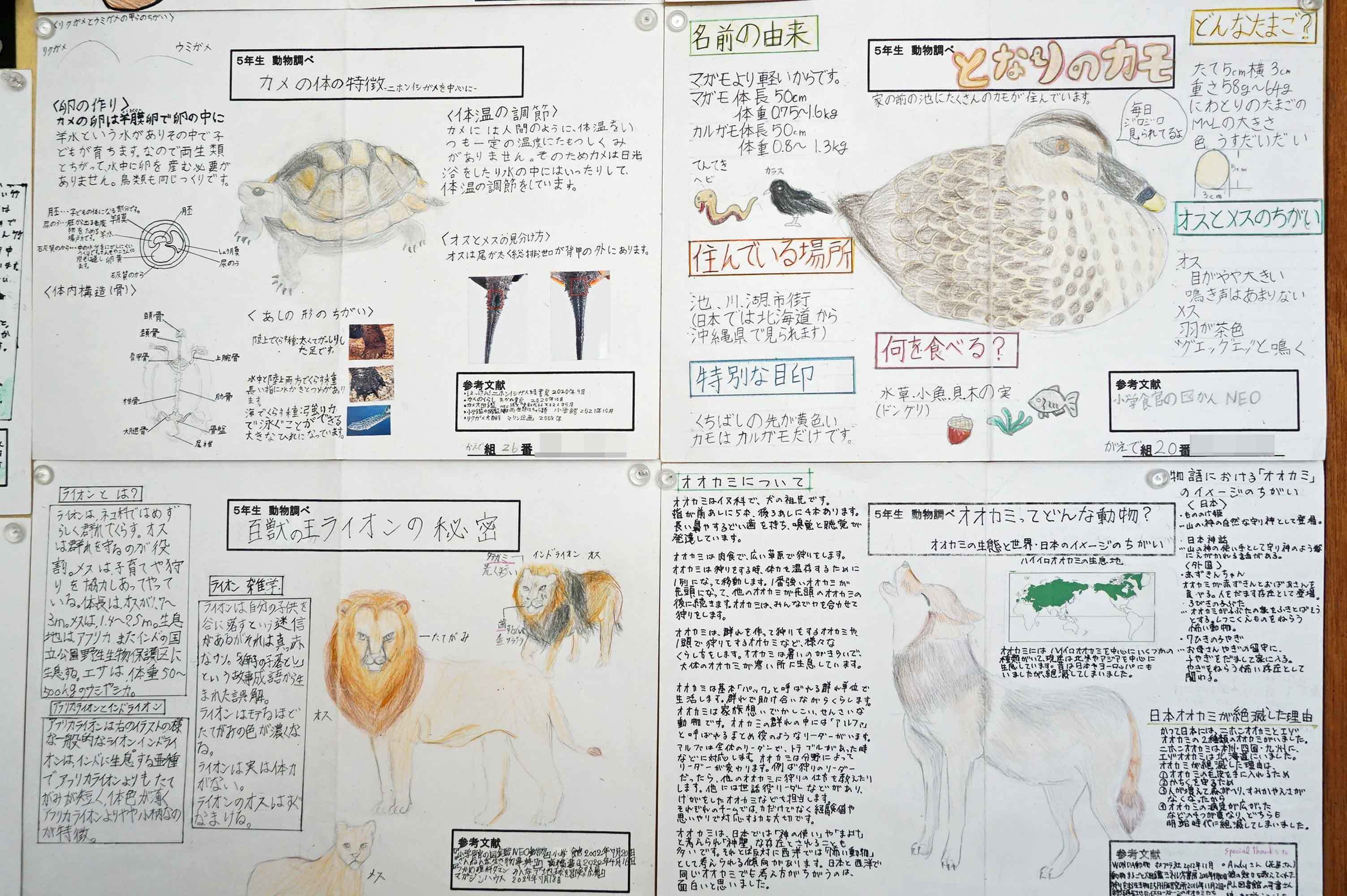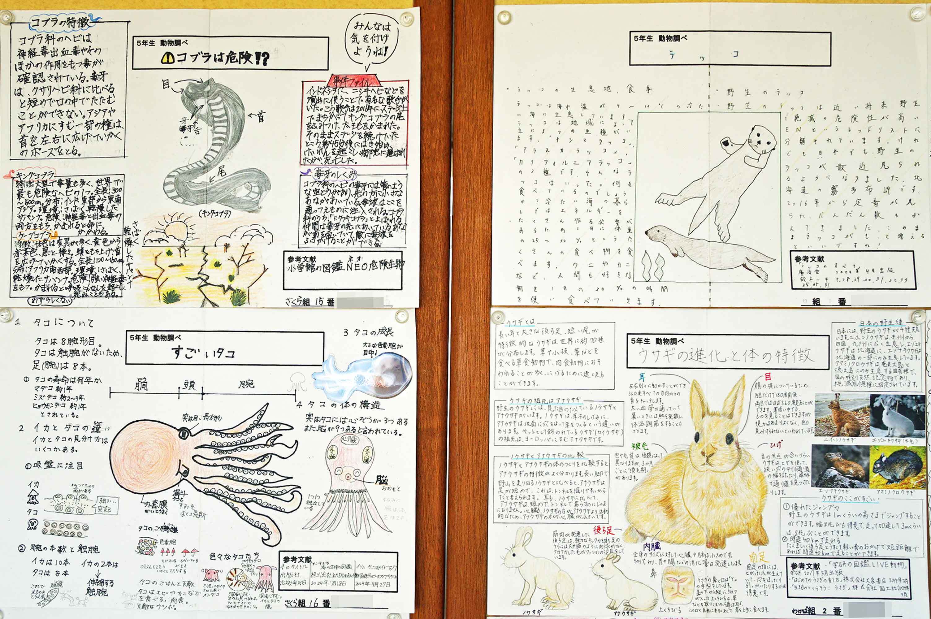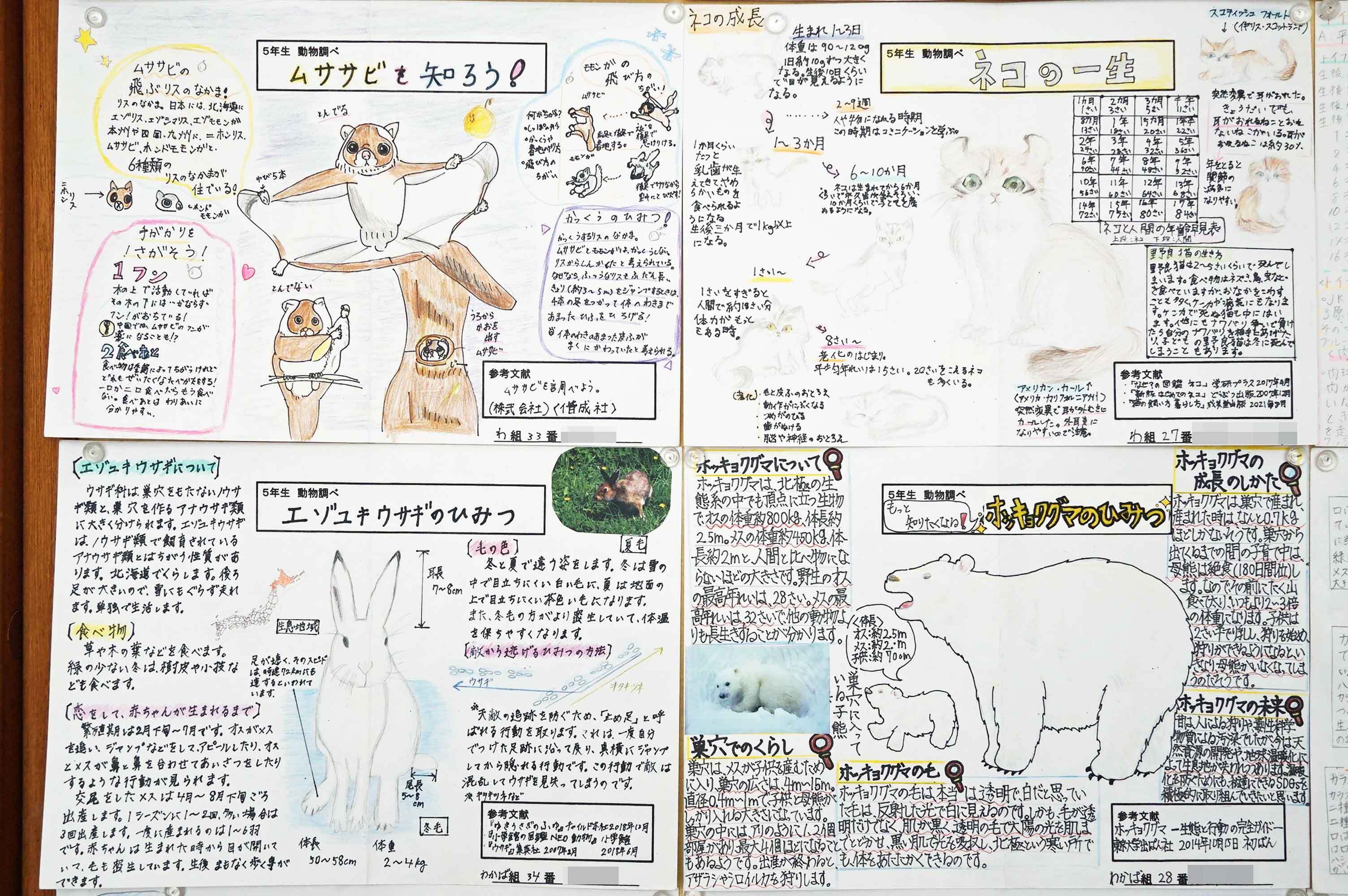 選ぶ動物、調べる視点、まとめの文章表現、ていねいに描かれた絵…子どもたちの個性と探究心が現れた見事なレポートがたくさん提出されました。