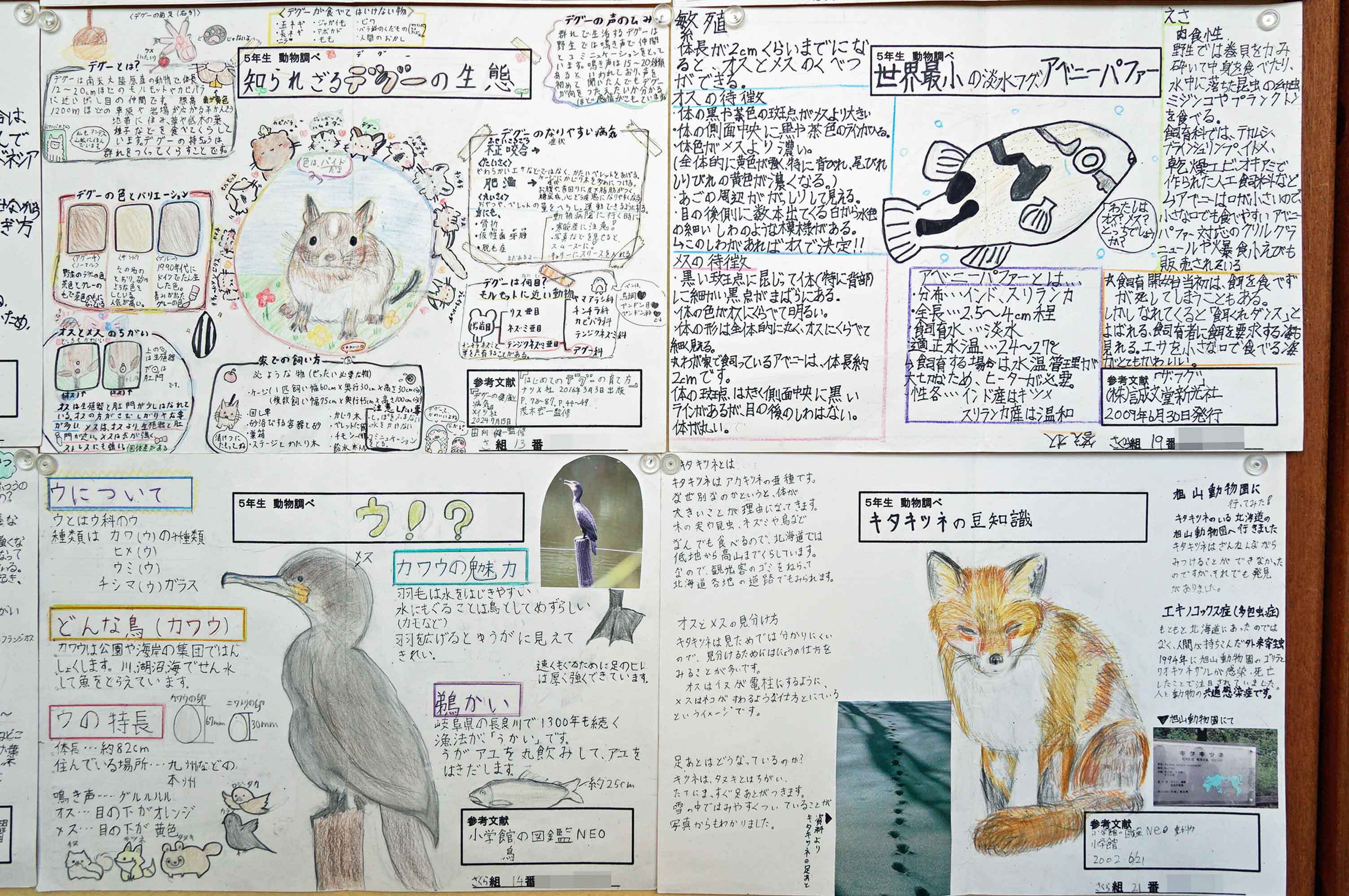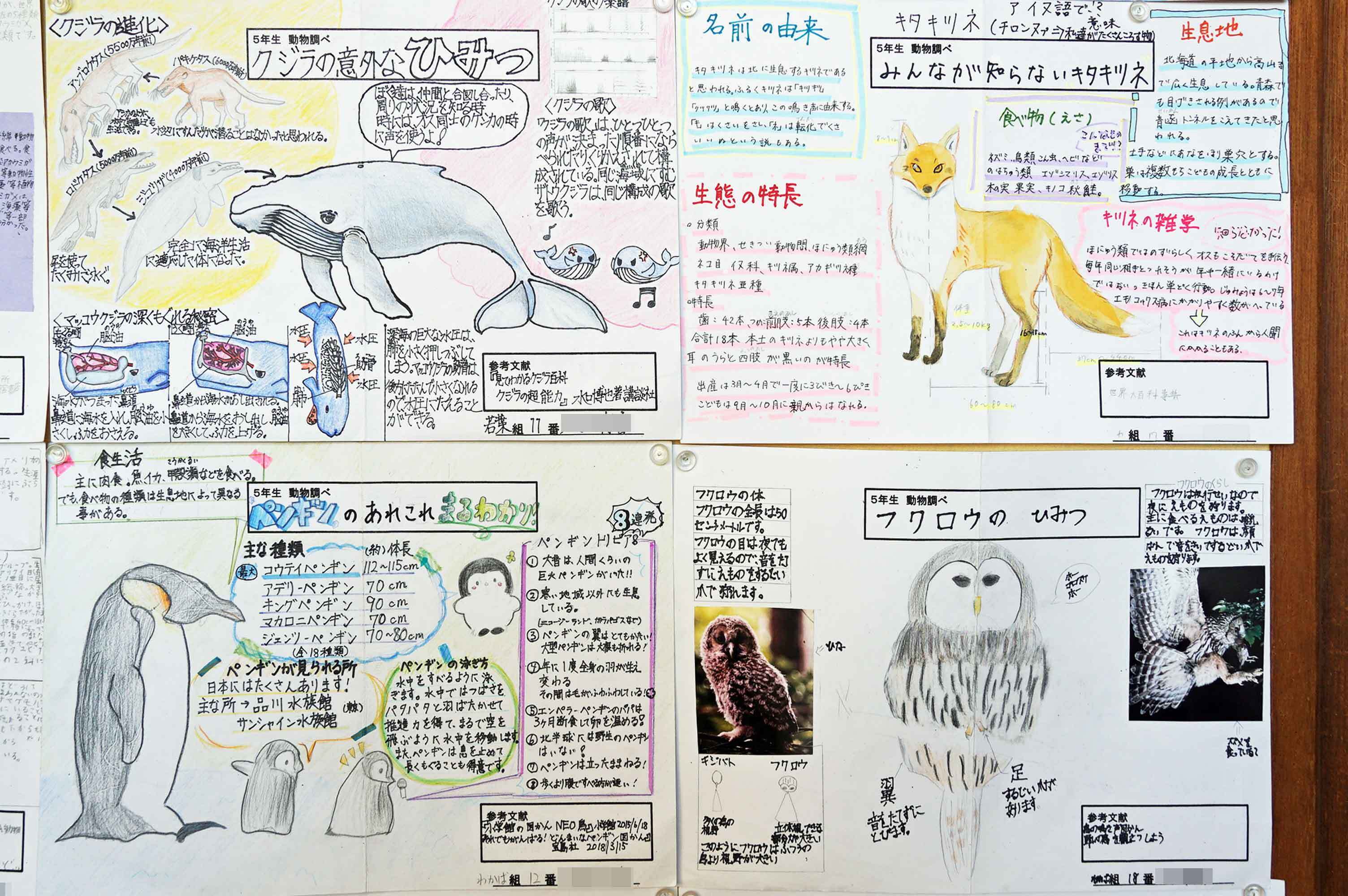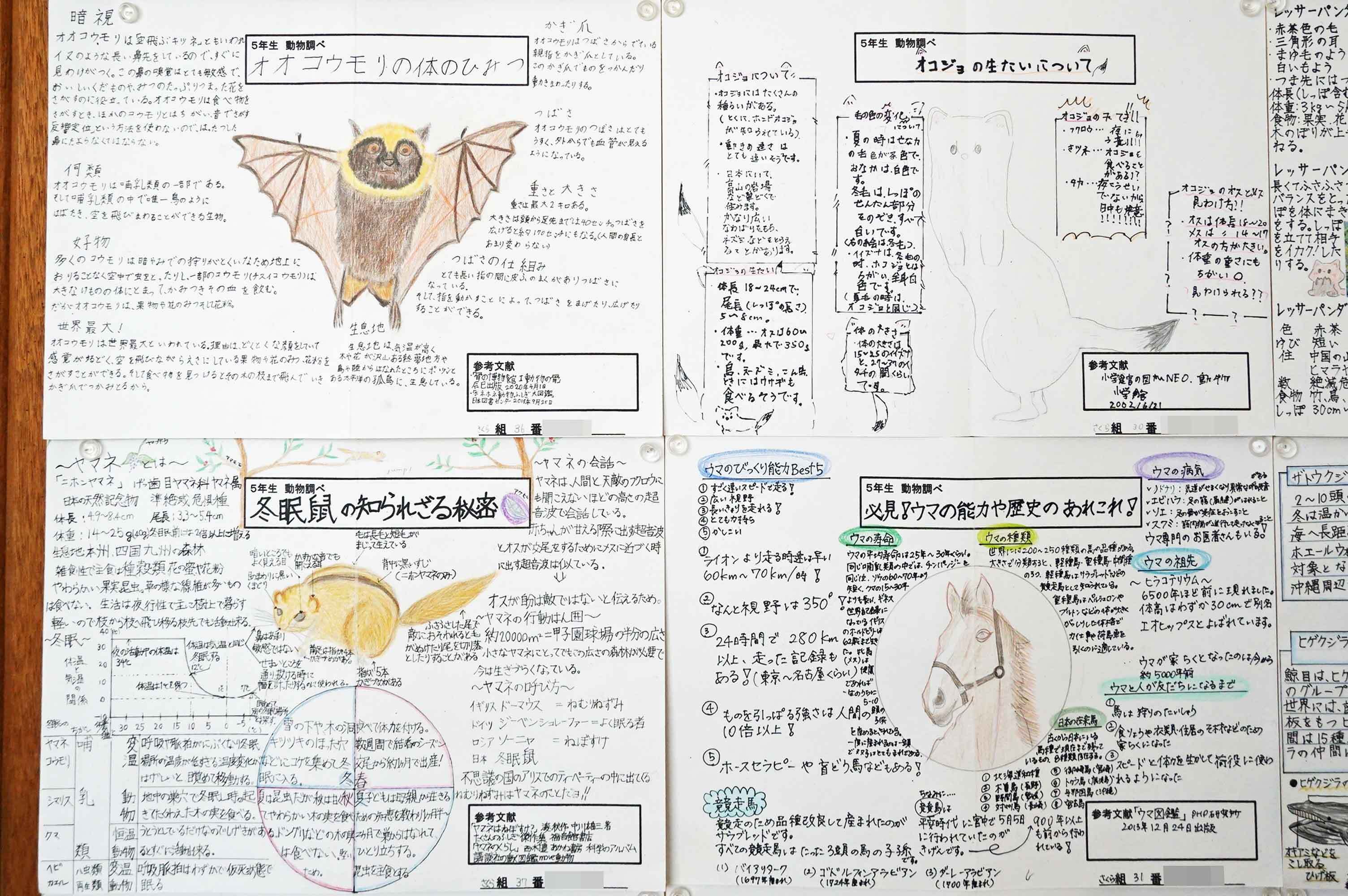 選ぶ動物、調べる視点、まとめの文章表現、ていねいに描かれた絵…子どもたちの個性と探究心が現れた見事なレポートがたくさん提出されました。