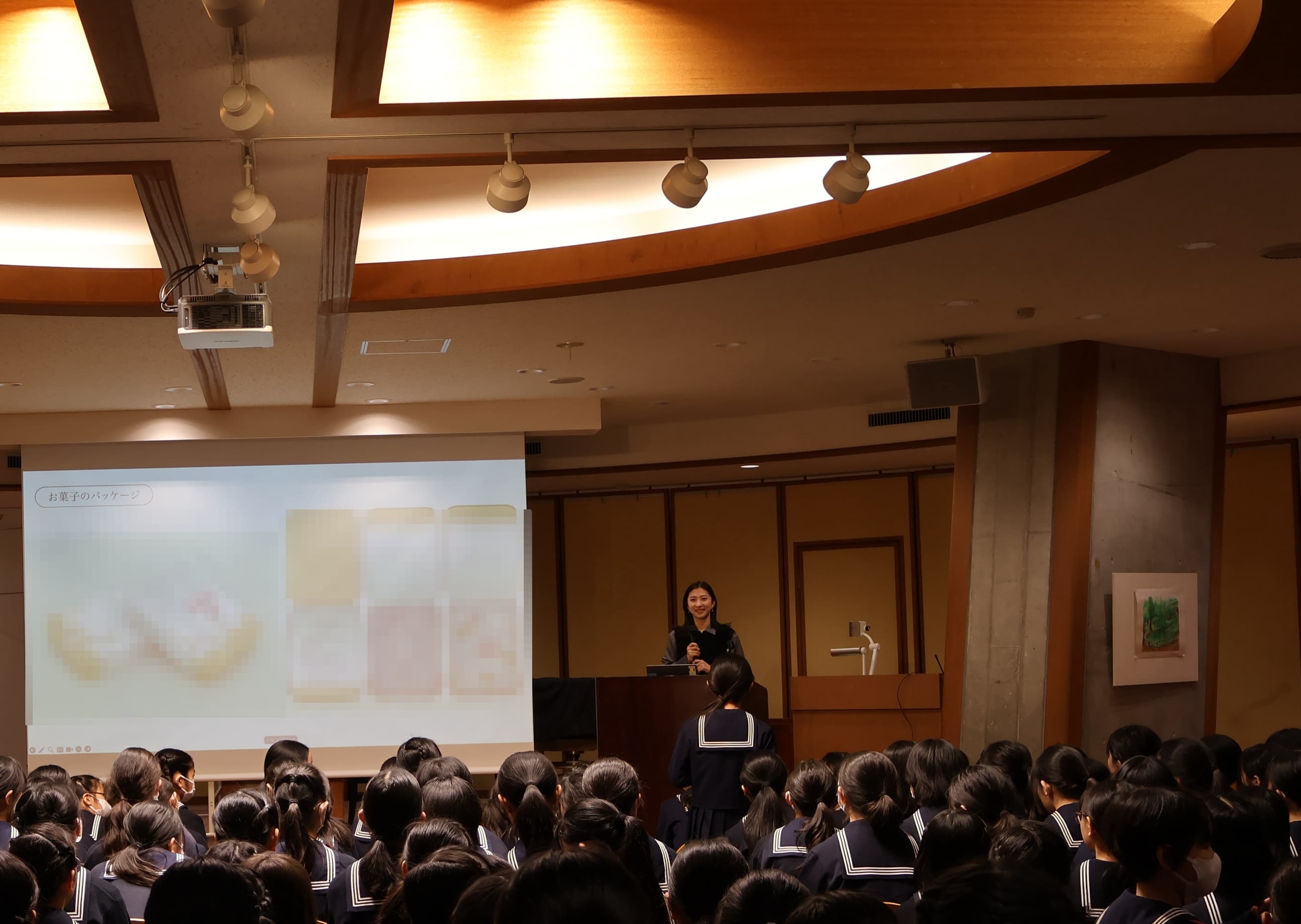 この日は、本校の卒業生であり、現在デザイナーとして活躍されている小関安里さんをお迎えし、好きなことや日々の学びが、将来の仕事や生き方にどのようにつながっていくのかをご自身の経験をもとにお話しいただきました。