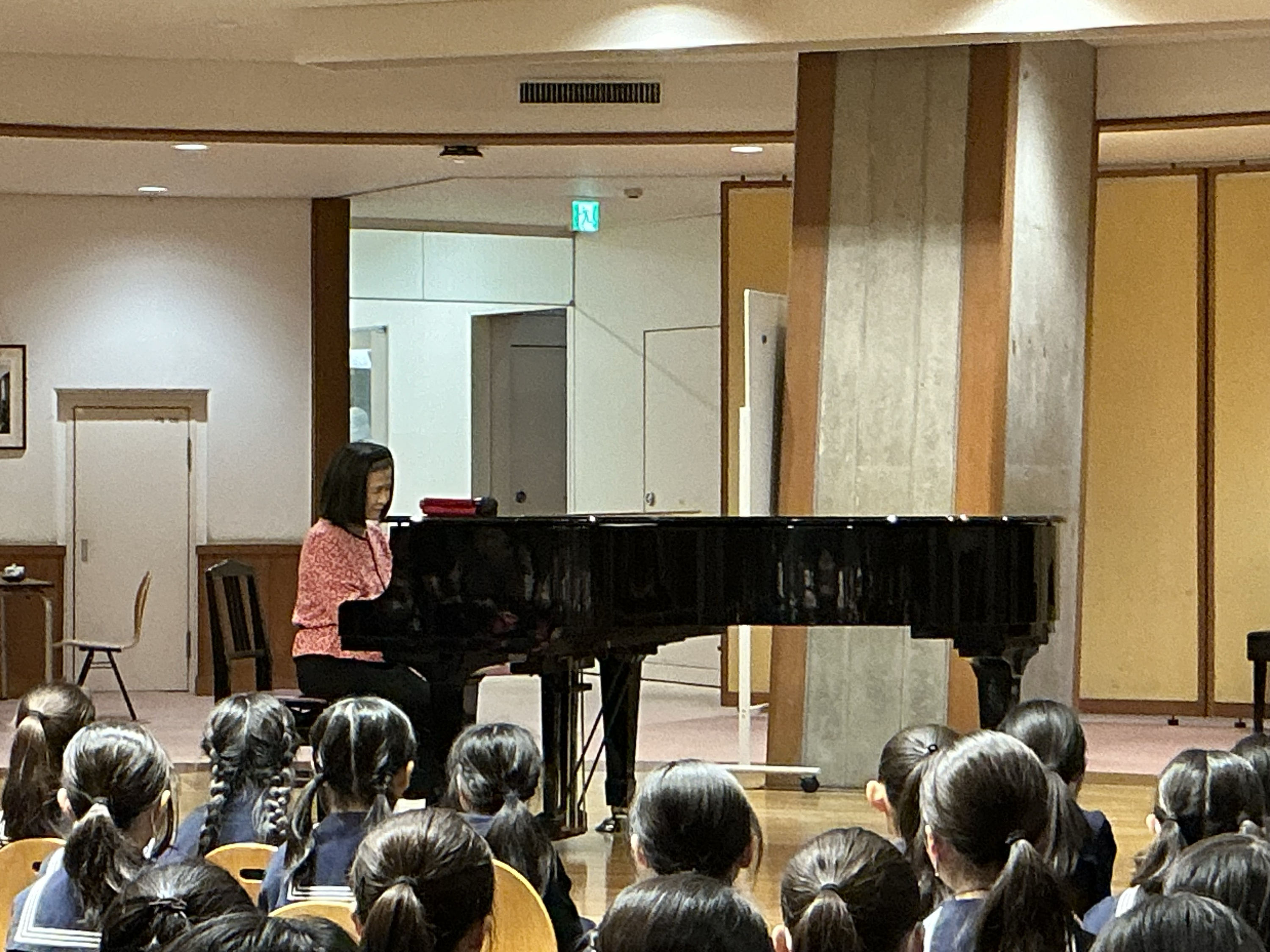 はじめに、5歳から続けてこられたピアノを披露してくださり、心のこもった素敵な演奏に、子どもたちは大きな感動を覚えました。