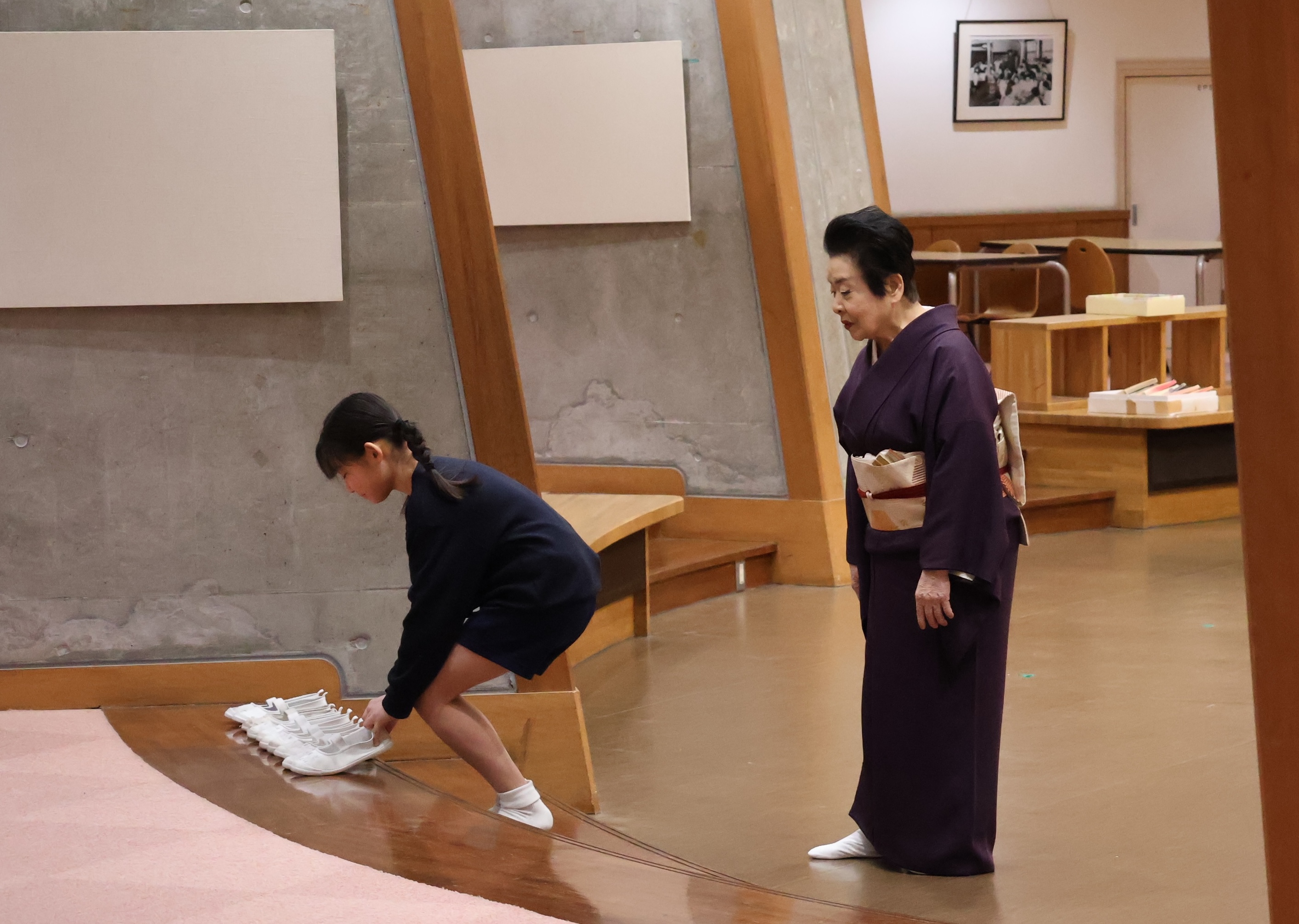 靴をそろえて脱ぐこと、着物を着ているつもりでの座り方や立ち上がり方、正座でのご挨拶など、日常の動作を丁寧に行うことの大切さを教えていただきました。