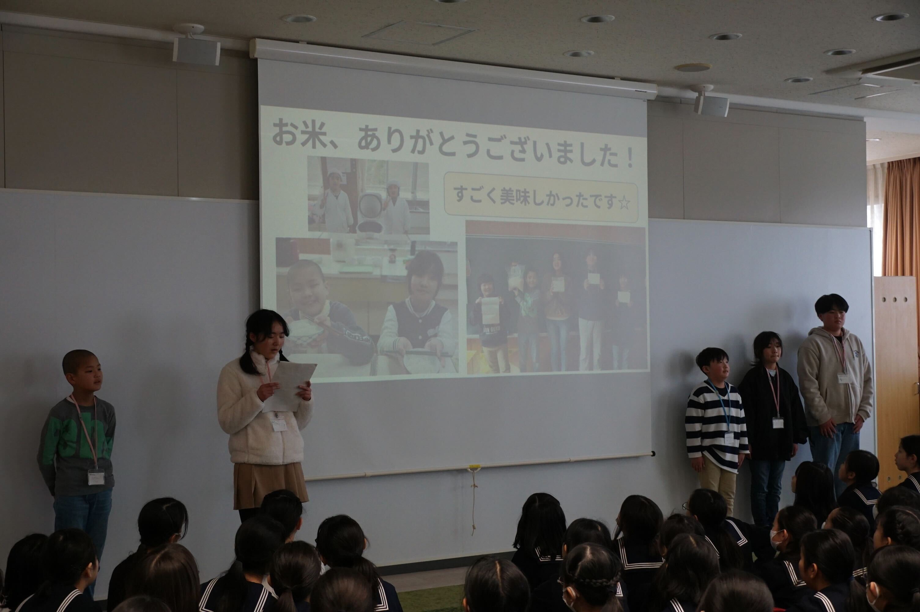 5年家庭科では、ここ数年、静岡市立梅ケ島小中学校とお米とお茶の交流を行ってきました。豊明小学校の5年生からは西生田で育てたお米を、梅ケ島小中学校からは全校児童生徒で育てたお茶を互いに送り合ってきました。