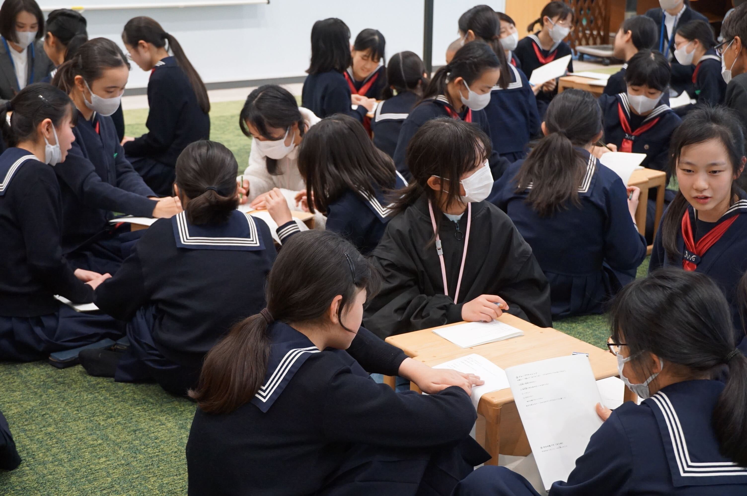 その後は「道徳 ペップトーク『とらえ方変換』〜見方を変えると?〜」の授業を一緒に受けました。豊明の子ども達と梅ケ島の子ども達が一緒になってグループ分けをして、お互いに意見を交わしたり発表をしました。初対面なのにあっという間に打ち解けて楽しく活動することができました。短時間ではありましたが、実際に会えたことで距離がぐんと縮まりました。