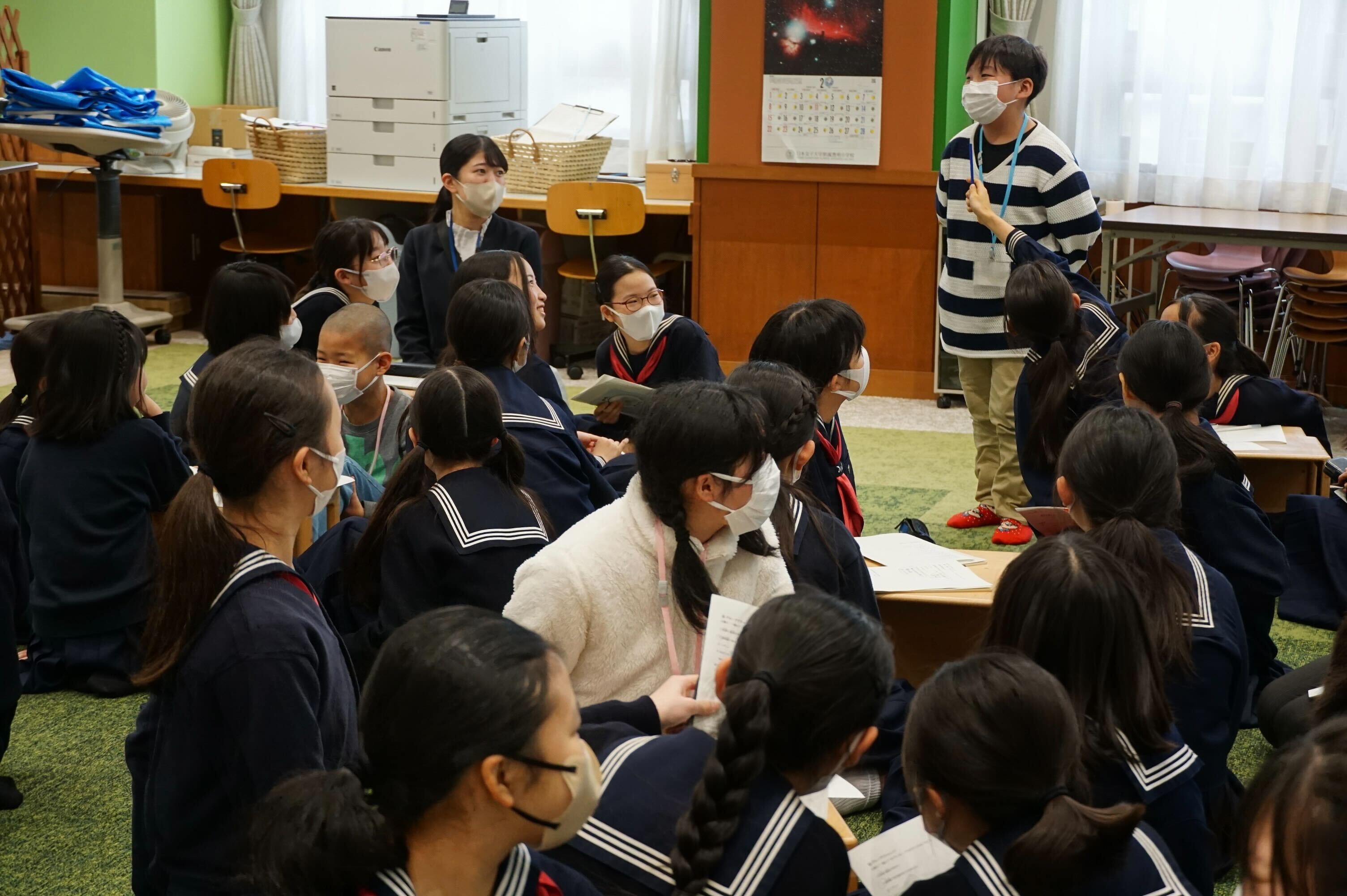 交流当日、梅ケ島小中学校から小学部の全児童(3年1名、5年2名、6年2名)と先生方が豊明小学校にいらしてくださいました。