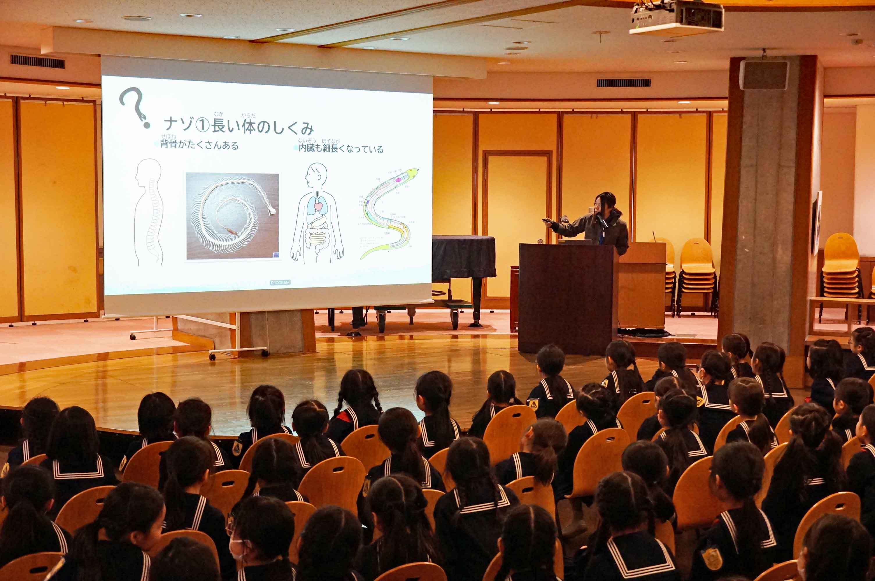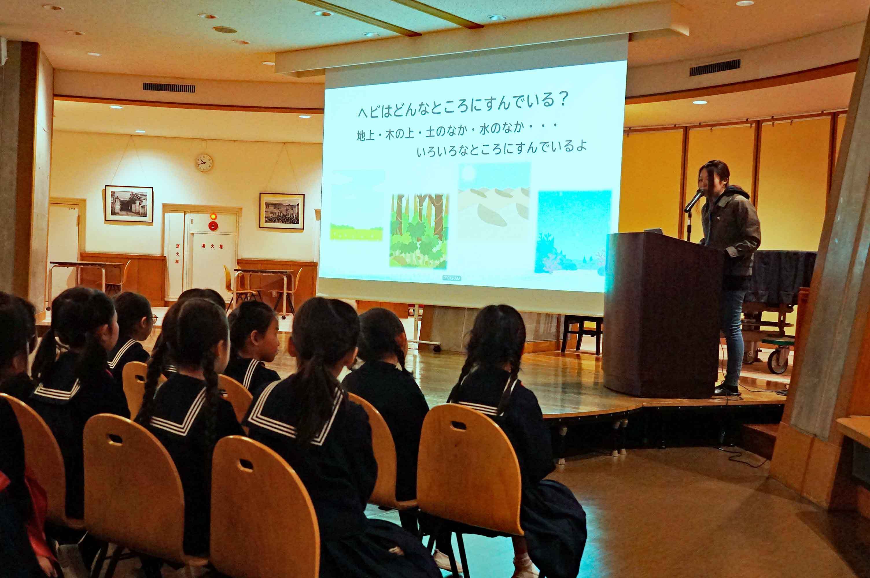 次の「ヘビの体のなぞ」はびっくりするようなお話の連続で、みんな食い入るように聞いていました。