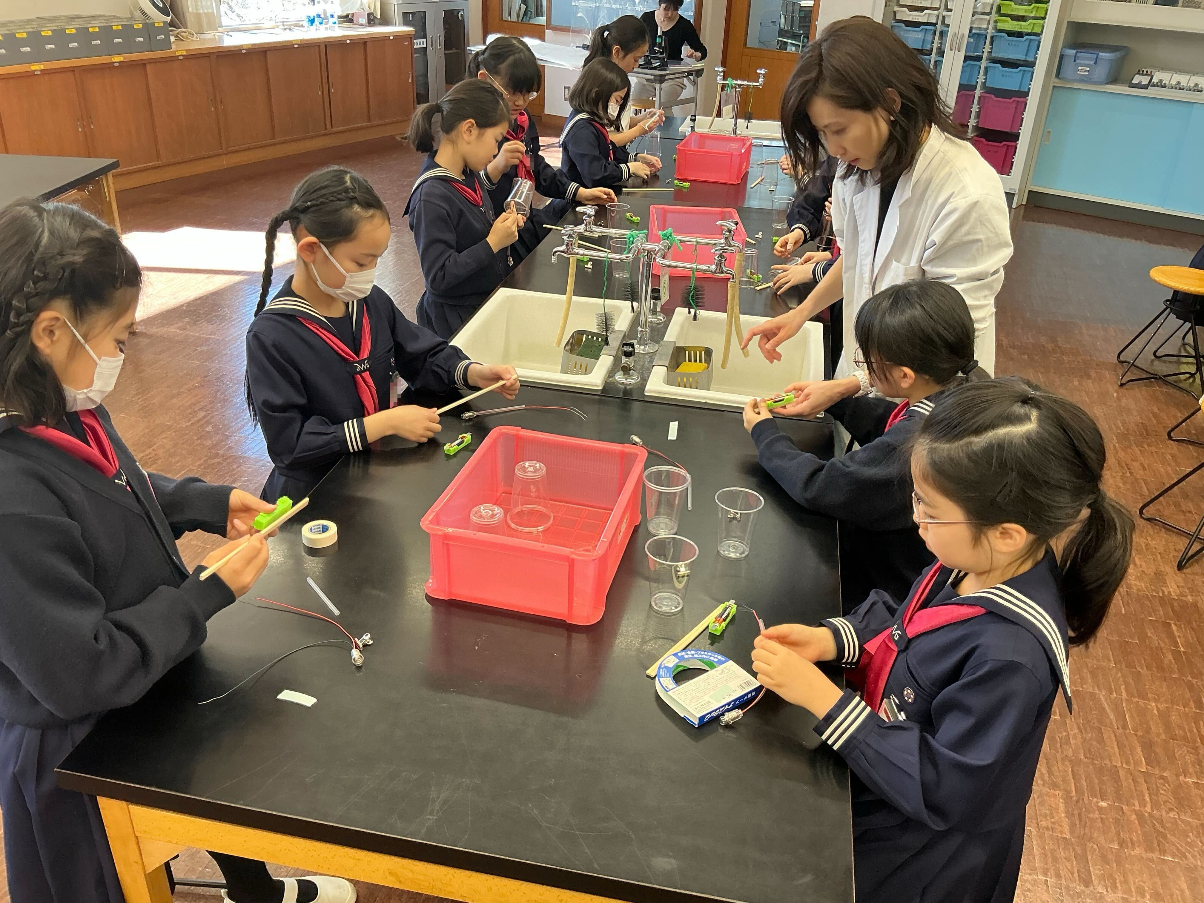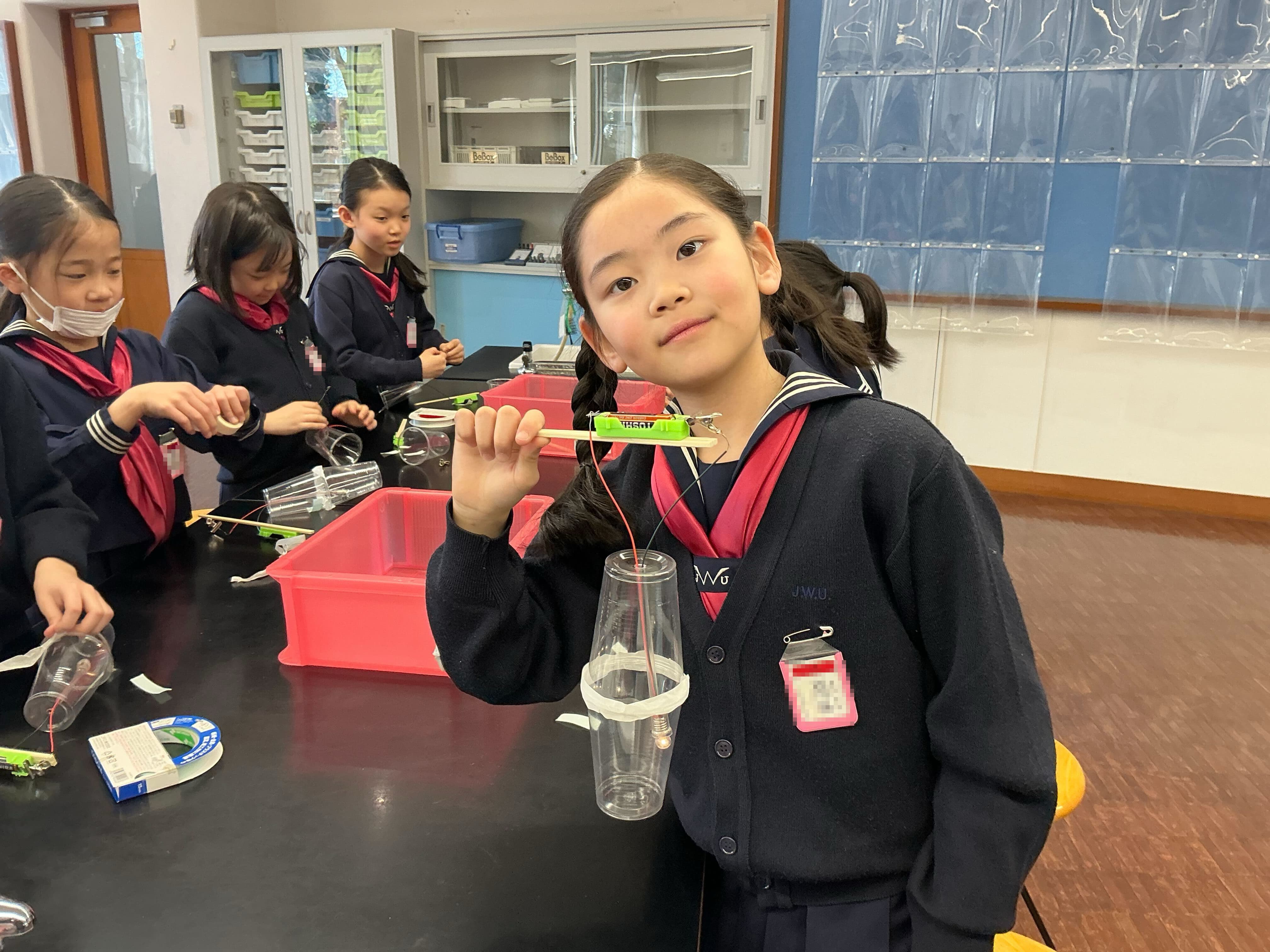 作業が進み、ランタンの豆電球に明かりが灯ると大興奮。4月から始まる理科の授業がさらに楽しみになりました。