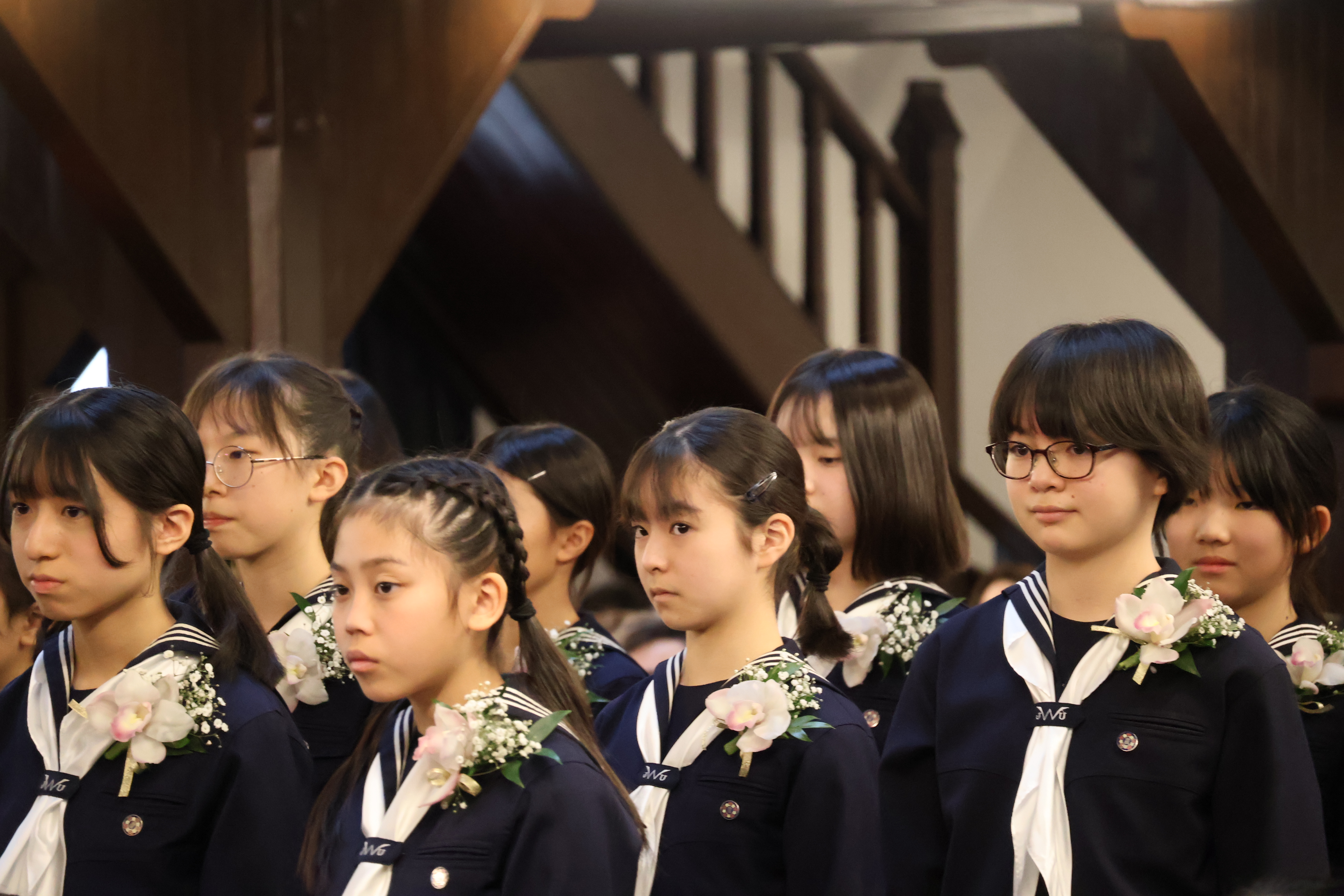 講堂いっぱいに広がる歌声は、別れの寂しさとともに、新しい一歩へ踏み出す希望を感じさせるものでした。