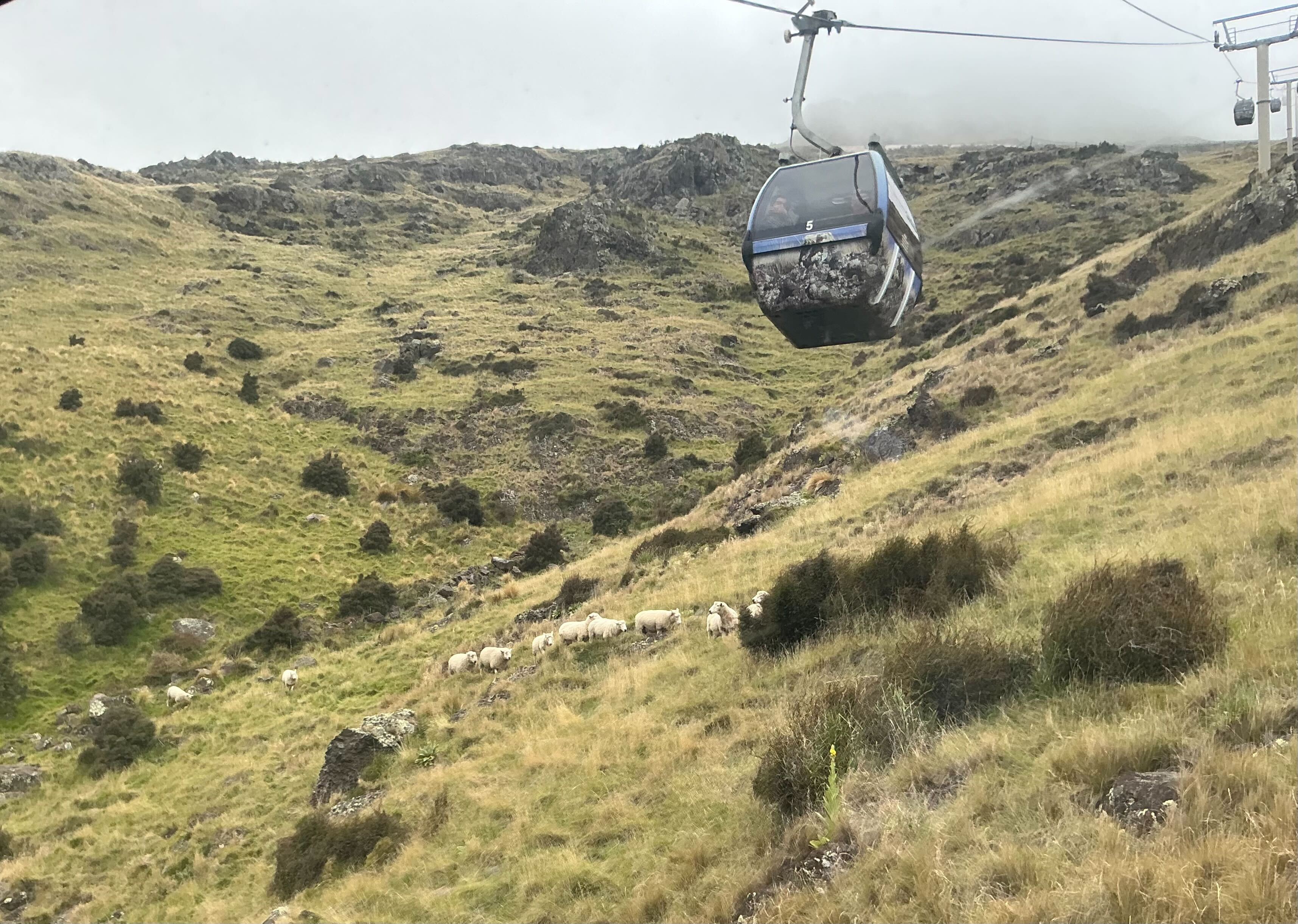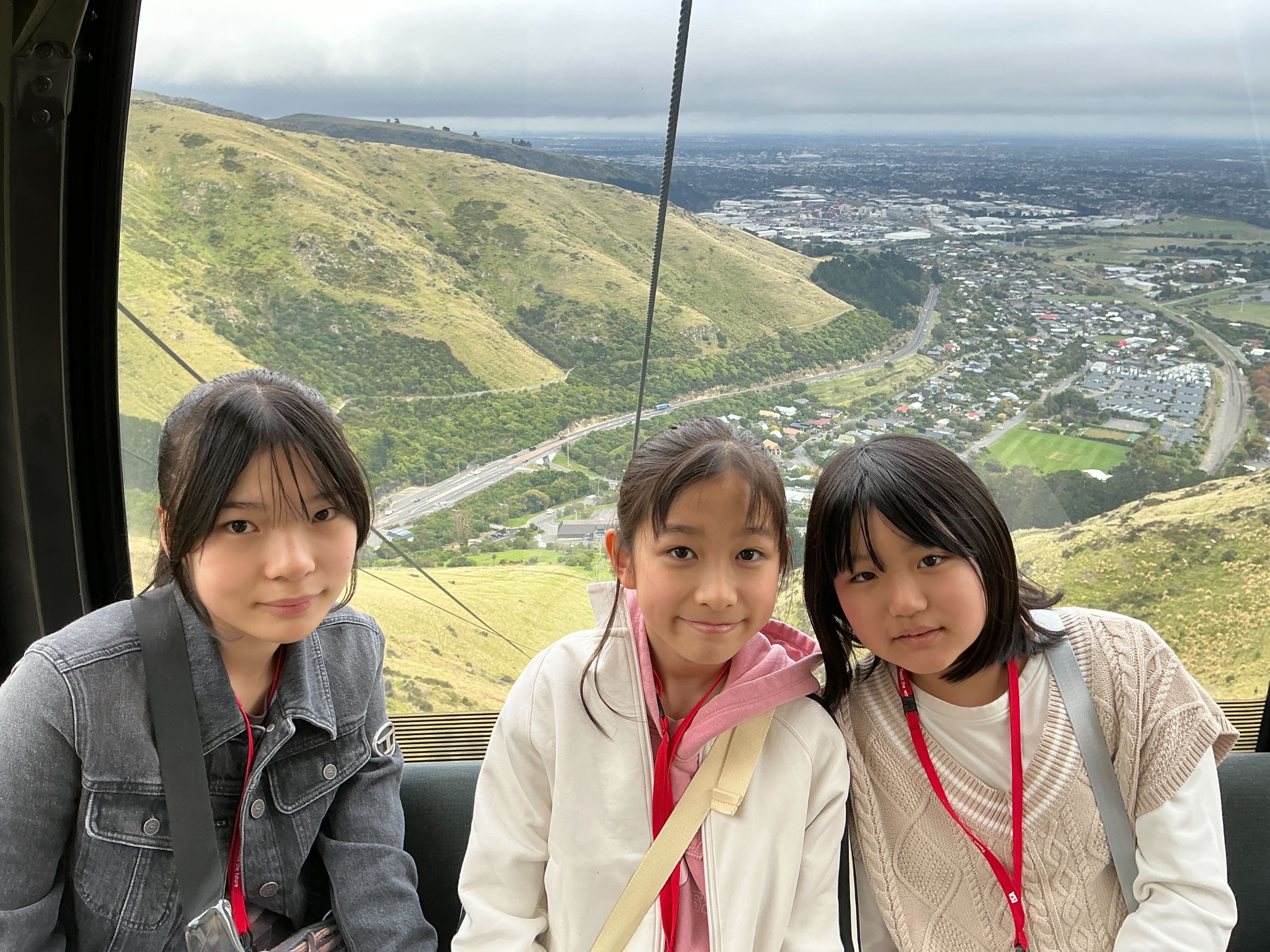 その後は観光です。まずは、クライストチャーチ・ゴンドラに乗りました。生憎の曇り空で頂上から市内を眺めることができなかったものの、雲の中にいる自分達を楽しんでいました。