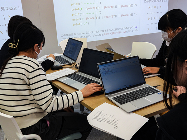 - 理学部数物情報科学科・賈伊陽先生を招聘し、「Pythonでプログラミング 入門講座」を開催しました。自分だけのゲームを作ることを目指し、試行錯誤しながら対話型ゲームを完成させました。(2025年3月12日実施)