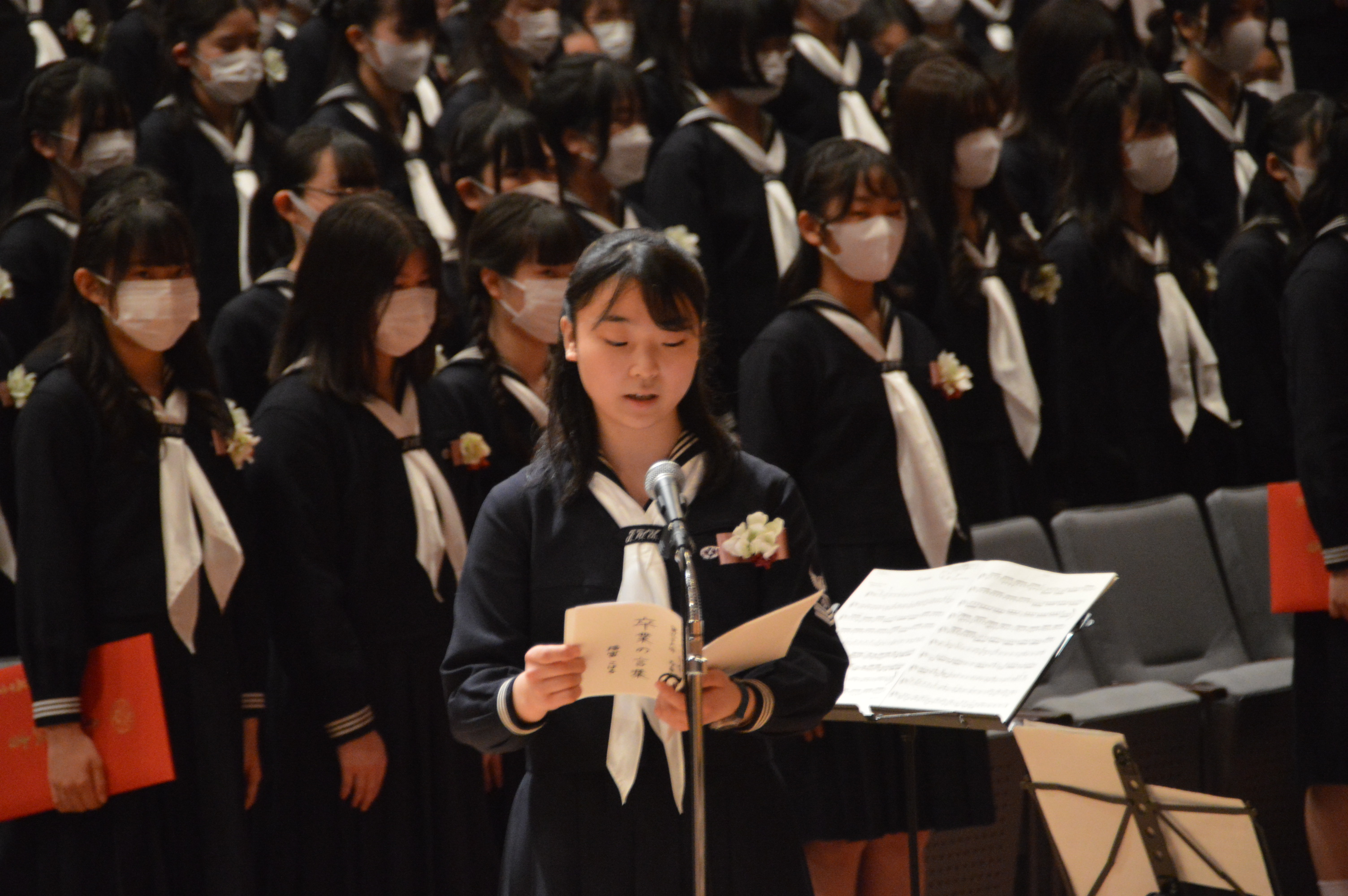 卒業生はすがすがしい顔で式に臨み、はなむけの言葉に耳を傾けました。