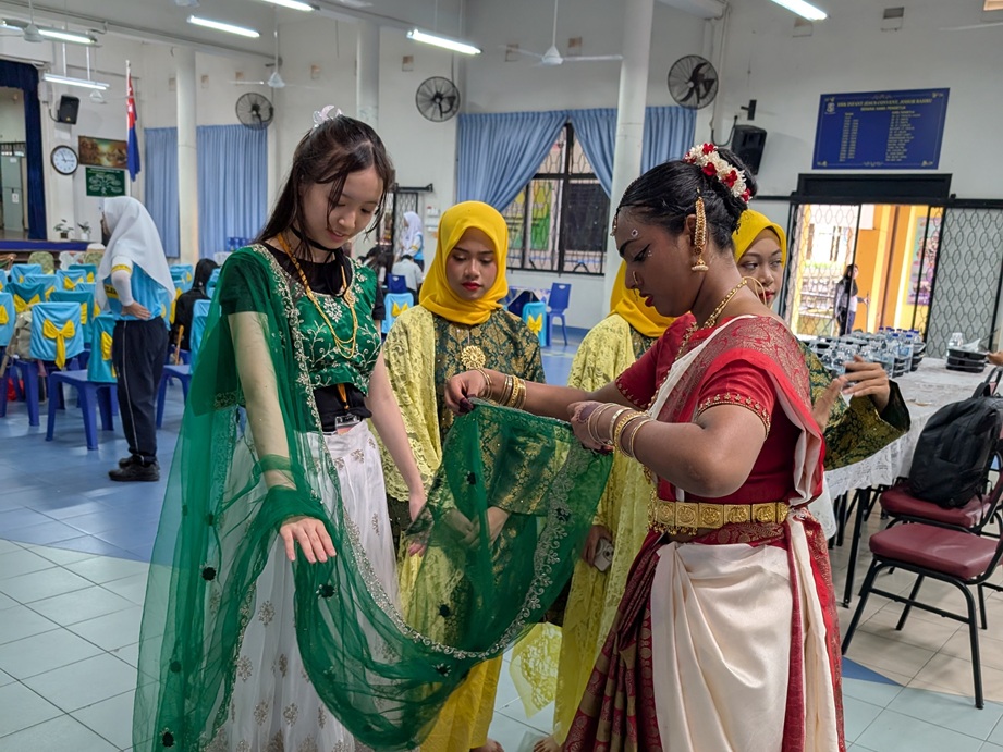 国立博物館やアラブストリートなど様々な場所を見学しましたが、特に印象に残ったのは3日目の学校交流です。陸路で移動したマレーシアでの出入国審査は貴重な経験となりました。現地の学校との交流会では英語を使ってお互いの文化に触れ合い有意義な時間を過ごすことができました。訪れた2か国は中国をはじめマレー系やインド系など様々な文化が混在している多民族国家です。その民族がお互いを認め合い共存していることを実感する5日間となりました。(S.H)