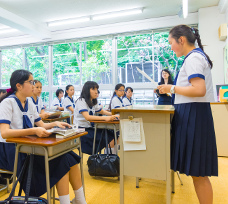スピーチ発表や作家研究、討論など生徒自らが作り出す時間に重点を置いています。様々な文章や文学に触れながら、豊かに表現する力を身につけます。