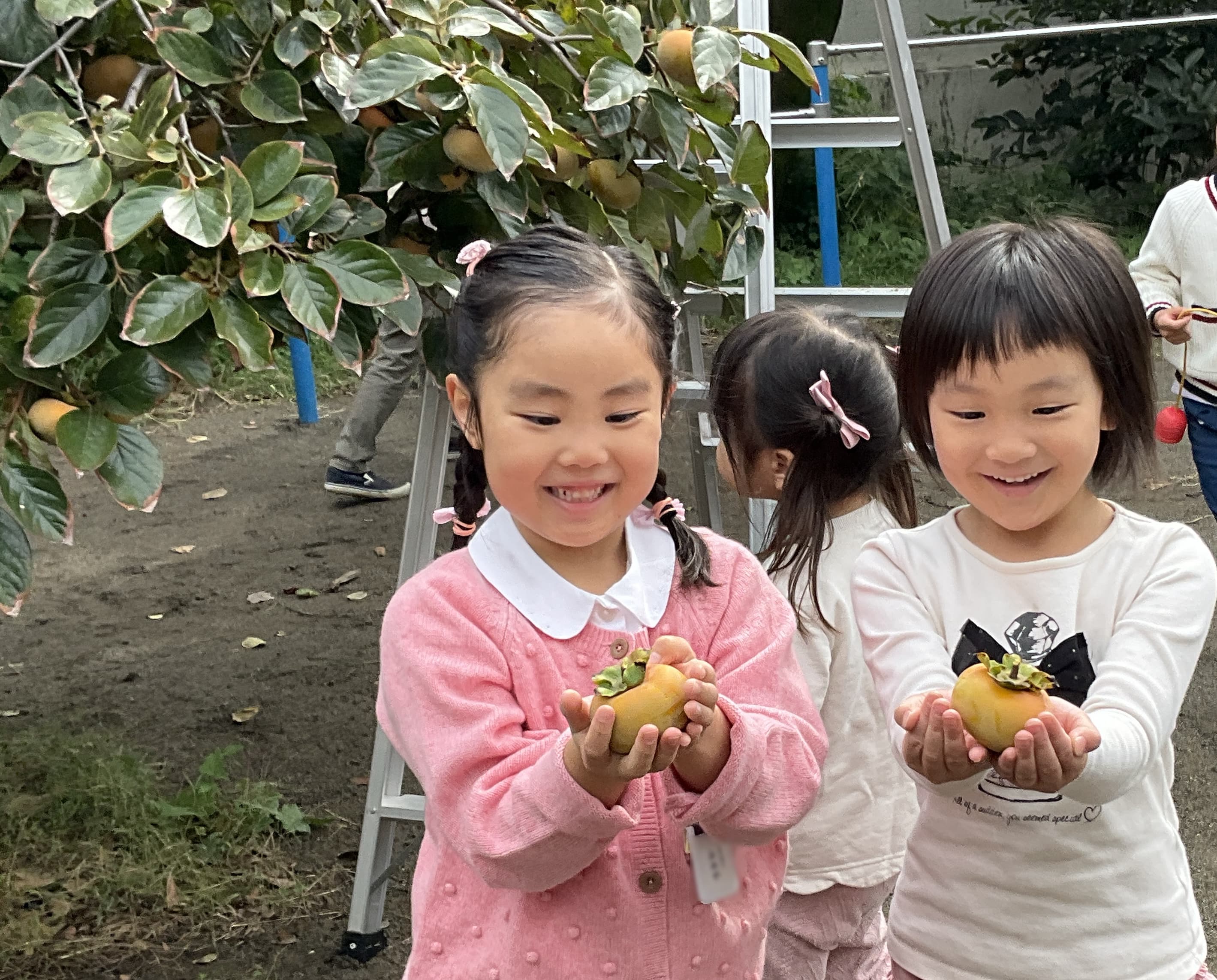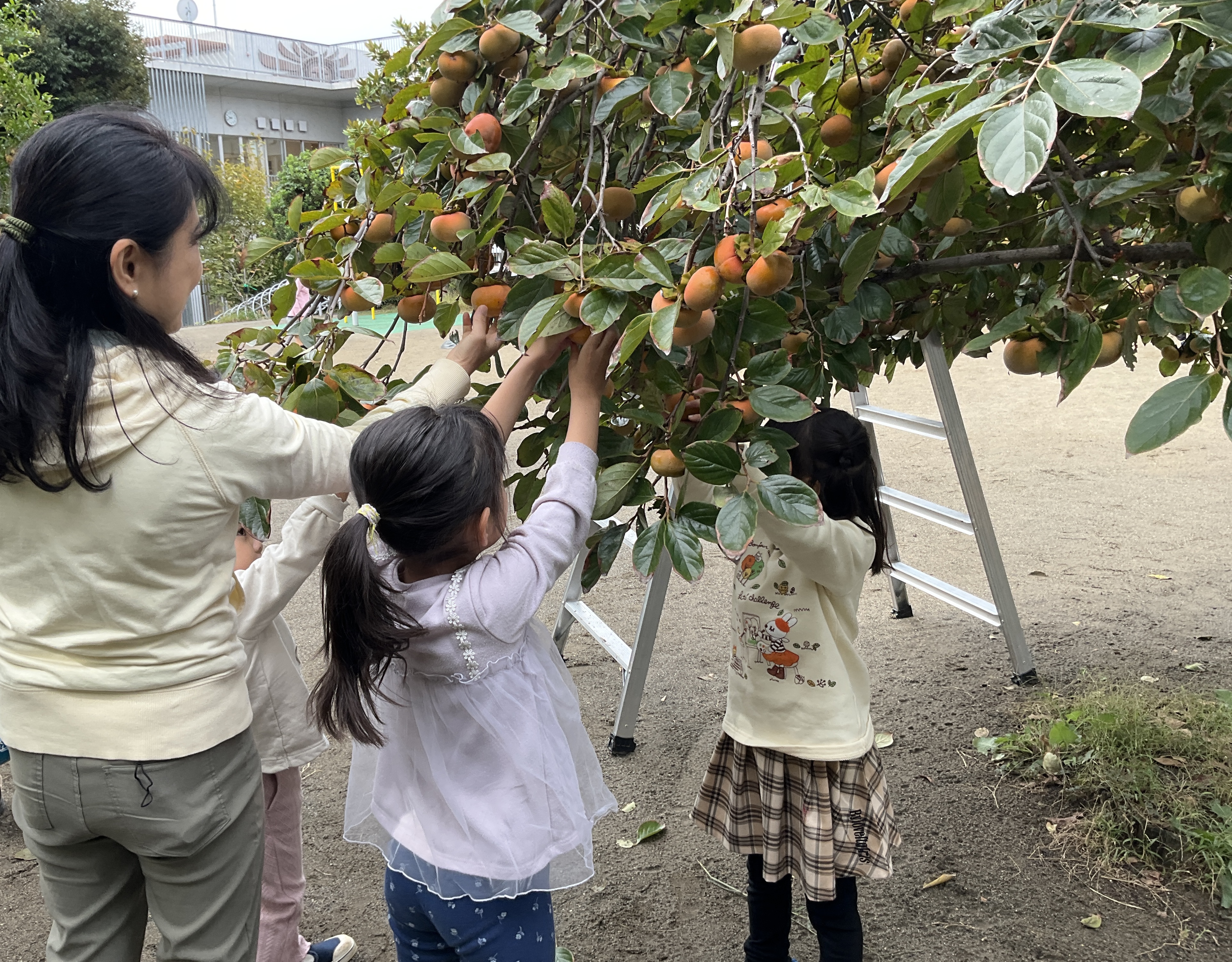 少し肌寒い空気の中、園長先生と一緒に柿の収穫を楽しみました。
