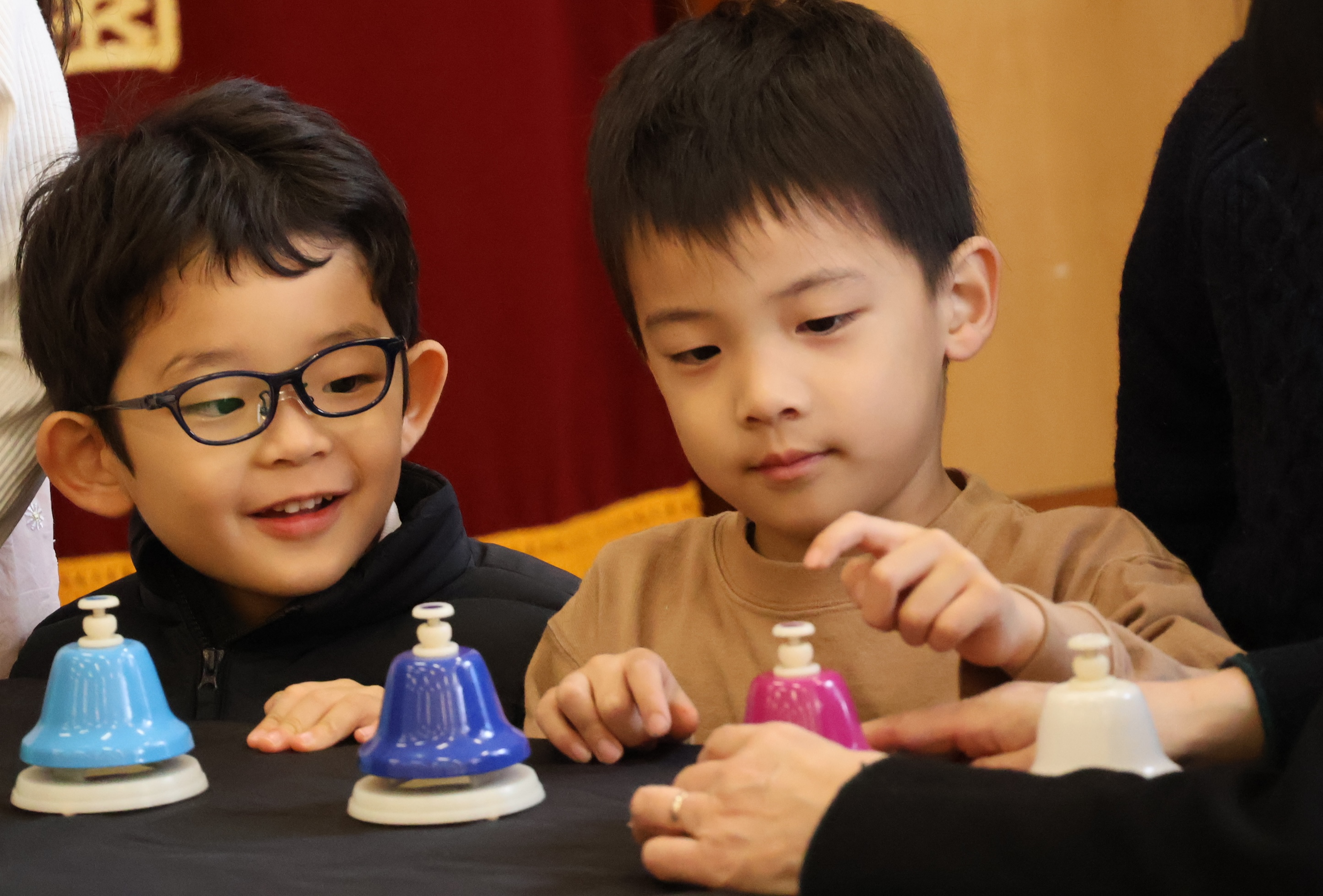 きらきらと並ぶベルを見た子どもたちの表情には期待があふれ、「どんな音が出るのかな?」というわくわくでいっぱいです。