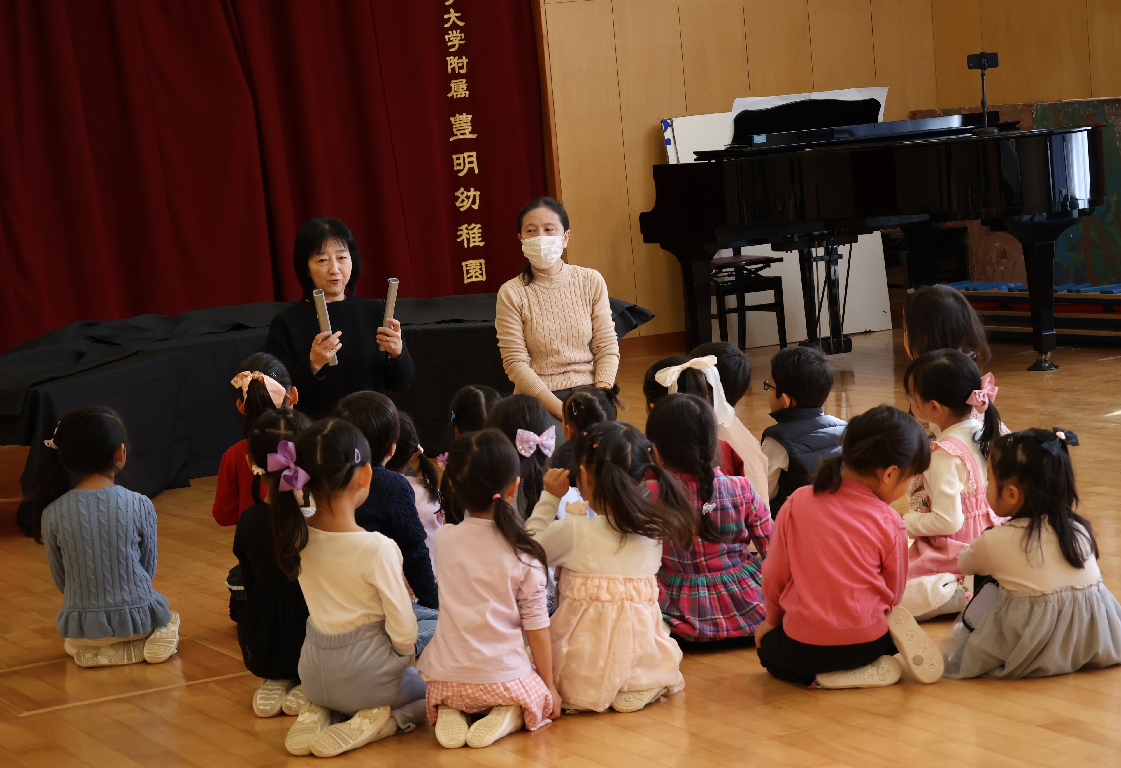 日本女子大学児童学科の根津知佳子先生をお招きし、年中組で「音遊び」の活動を行いました。
