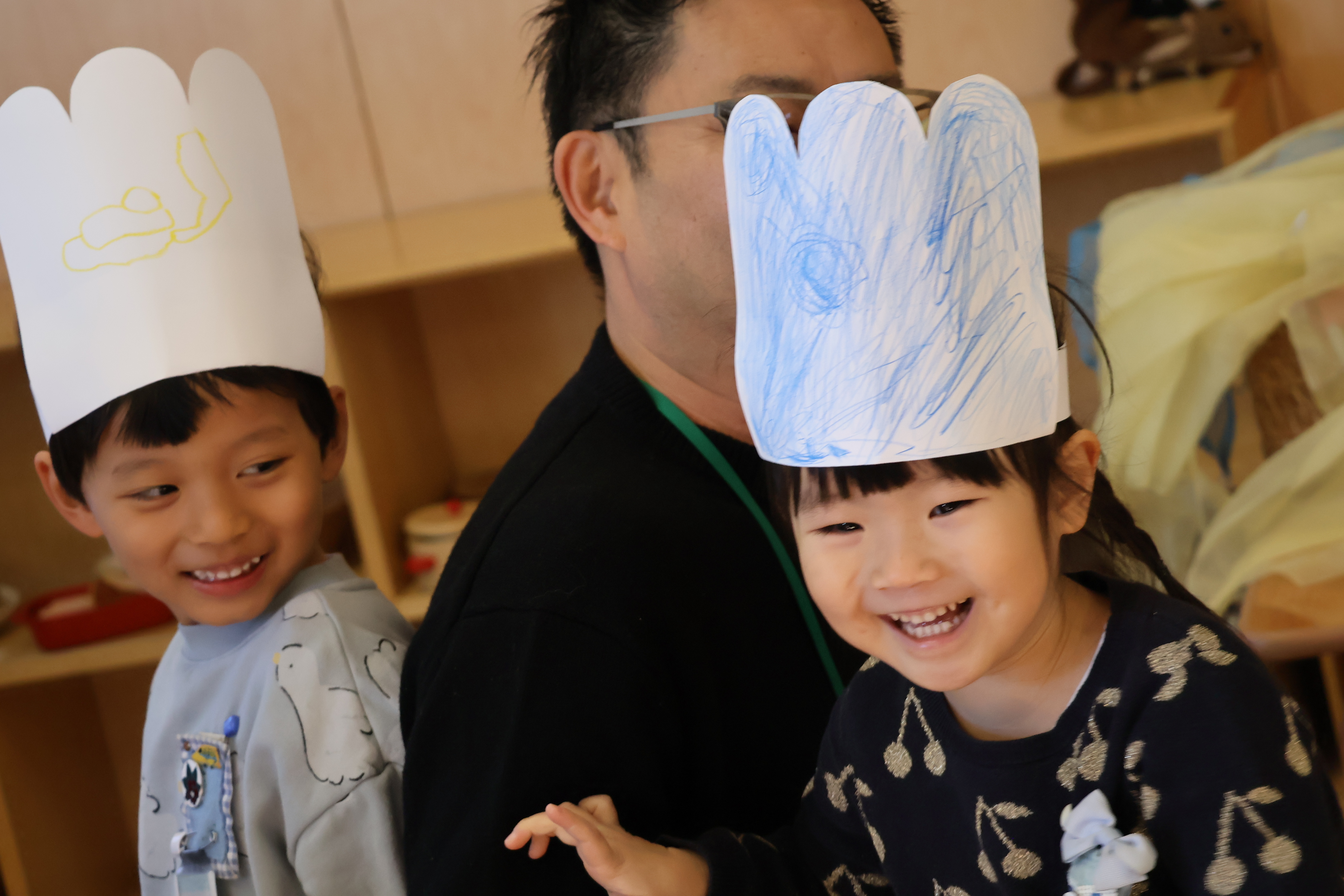 年長組の子どもたちが鈴を鳴らしながら年中組・年少組へひとつずつ心を込めて届けに行く姿は、とても温かな光景でした。