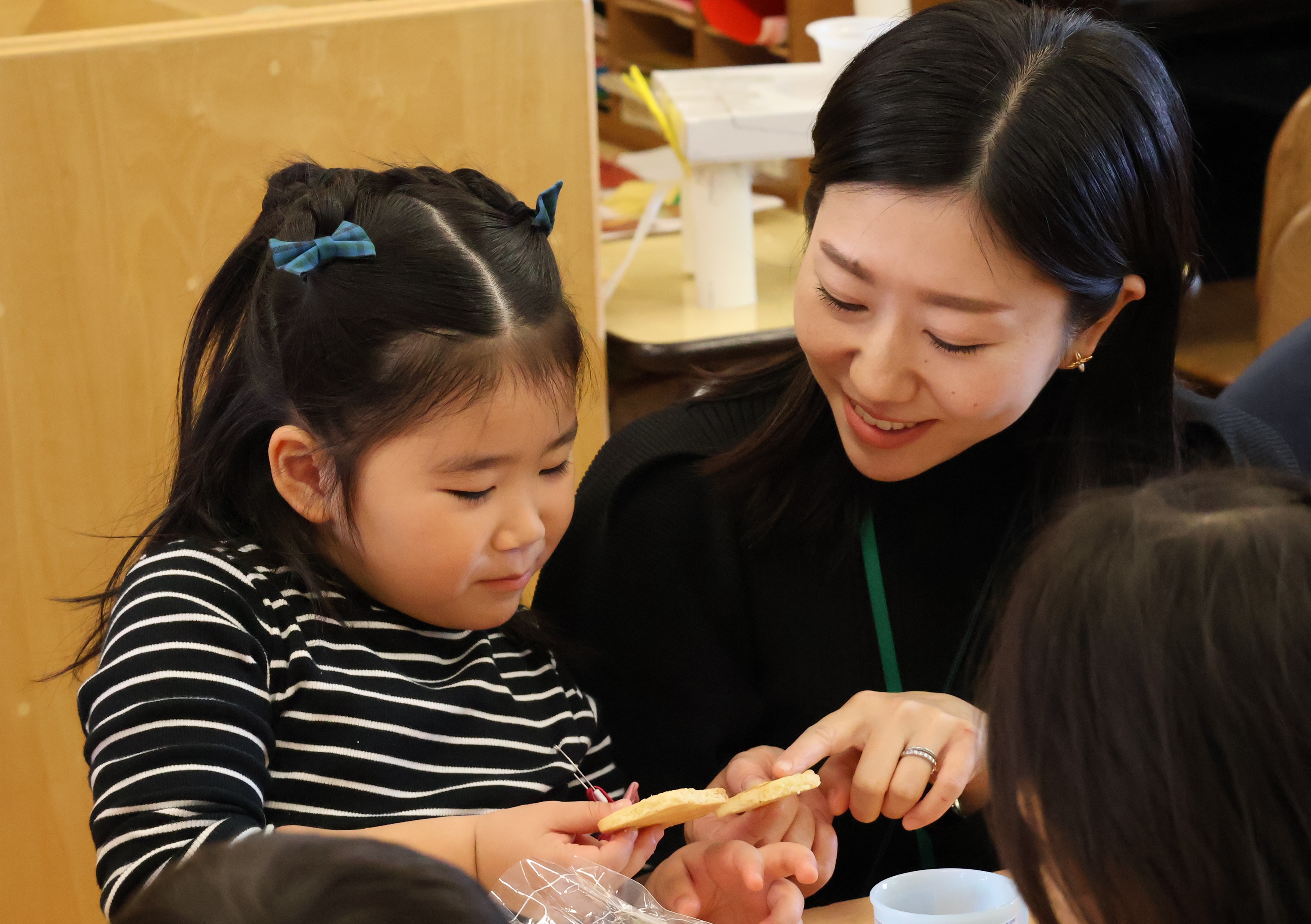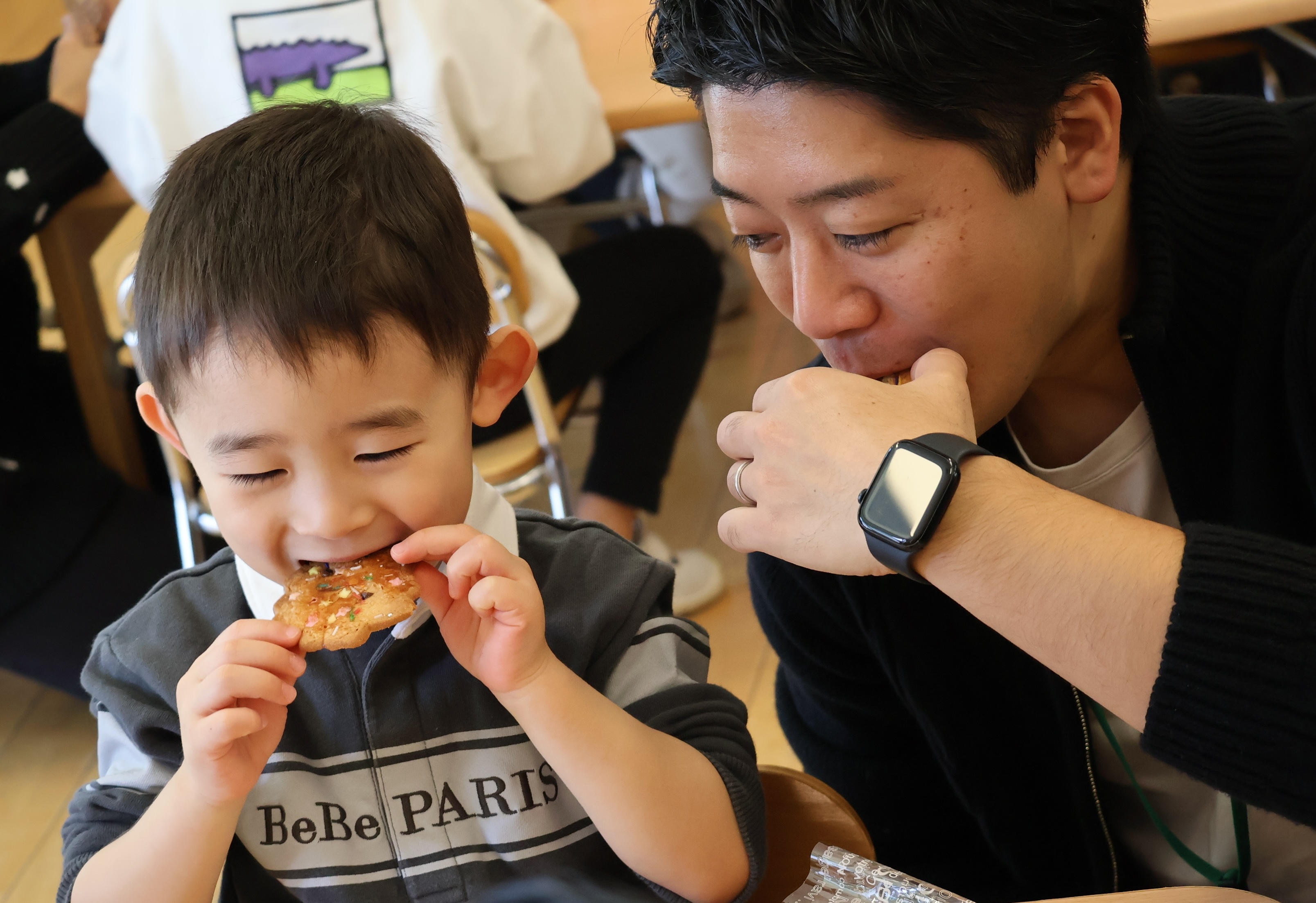 おやつの時間には、年長組が作ったクリスマスクッキーを全学年でいただきました。