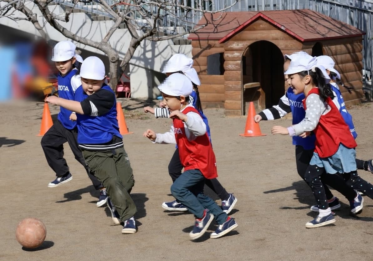 東京都サッカー協会の方々をお招きして、年長児を対象にサッカー教室を開催しました。