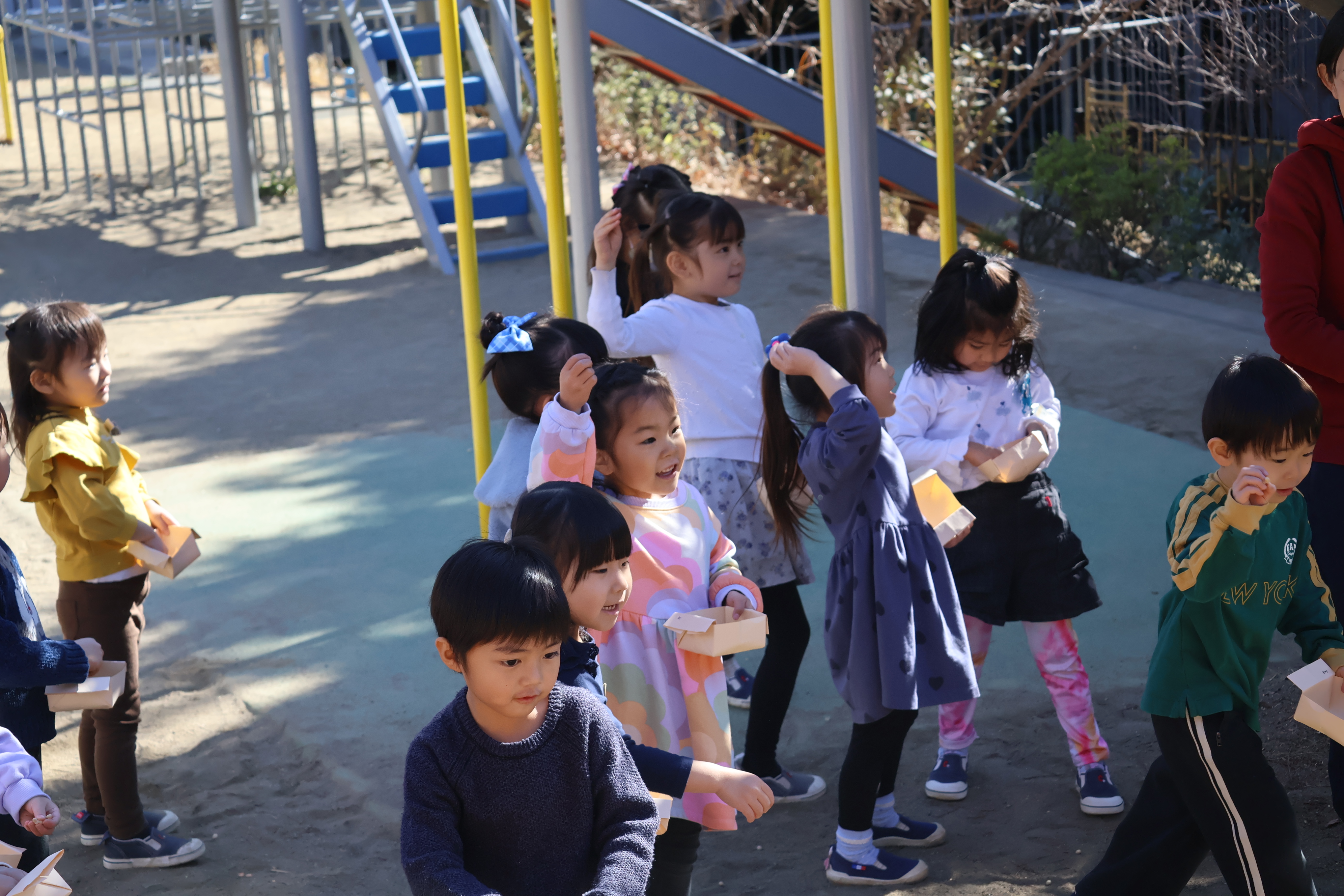 節分という行事を通して園庭に広がった賑やかな時間は、子どもたち一人ひとりの心に残るものとなりました。