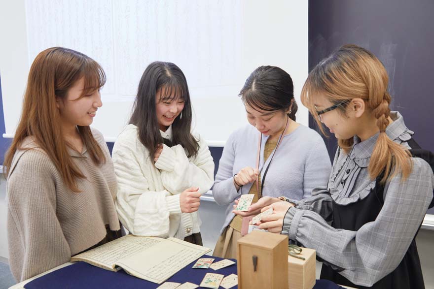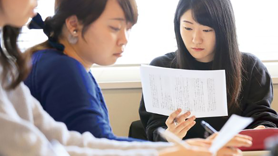日本文学科の授業では、文献やデータベースを用いて調査を行う体験を重視しています。実際に文献を読み、データベース検索を行ってみることで、広く深く調査をする力が身についていきます。