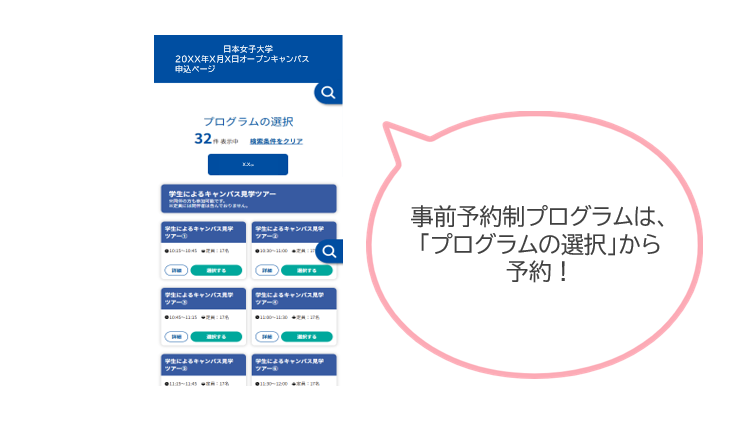 ・「在学生によるキャンパス見学ツアー」「学寮見学ツアー」「食堂 ランチェ」は事前予約制です。