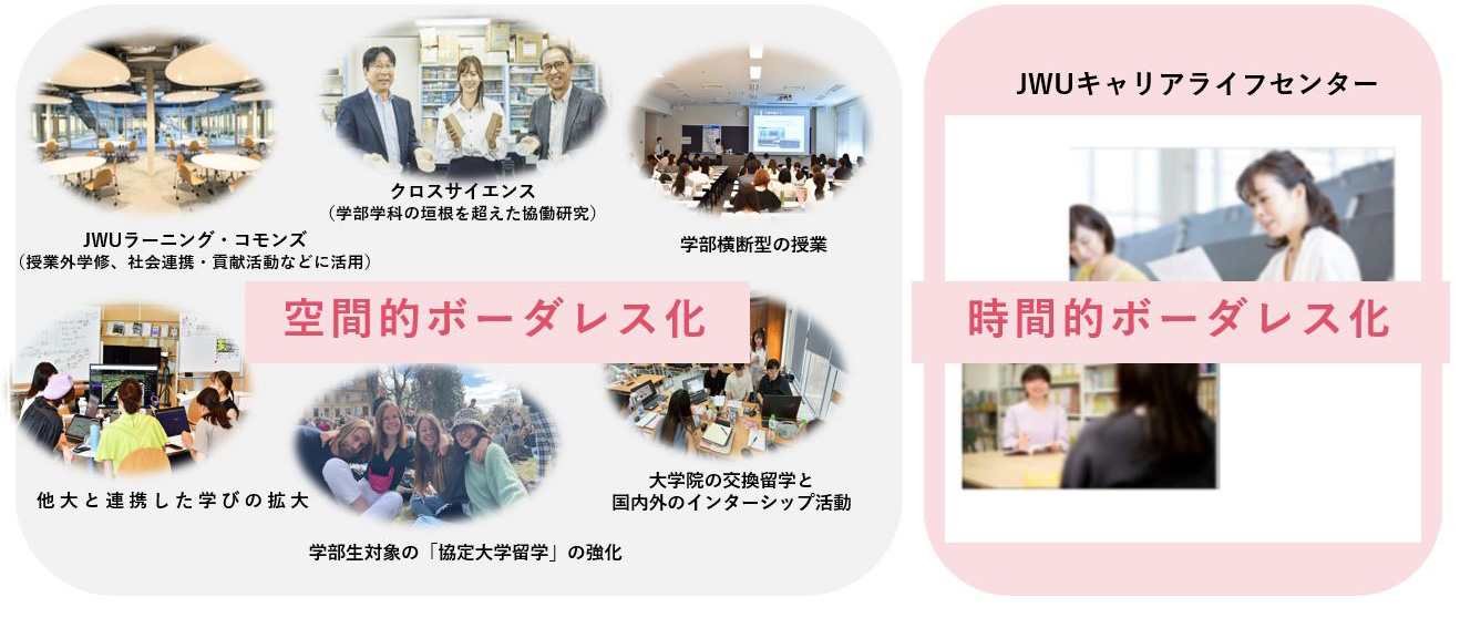 2026年4月には、女性のキャリア形成を包括的に教育・支援するために、在学生を対象とした「キャリア支援課」と、卒業生を含む社会人を対象とした「リカレント教育課程」の機能を統括した、「J W Uキャリアライフセンター」を開設する予定です。