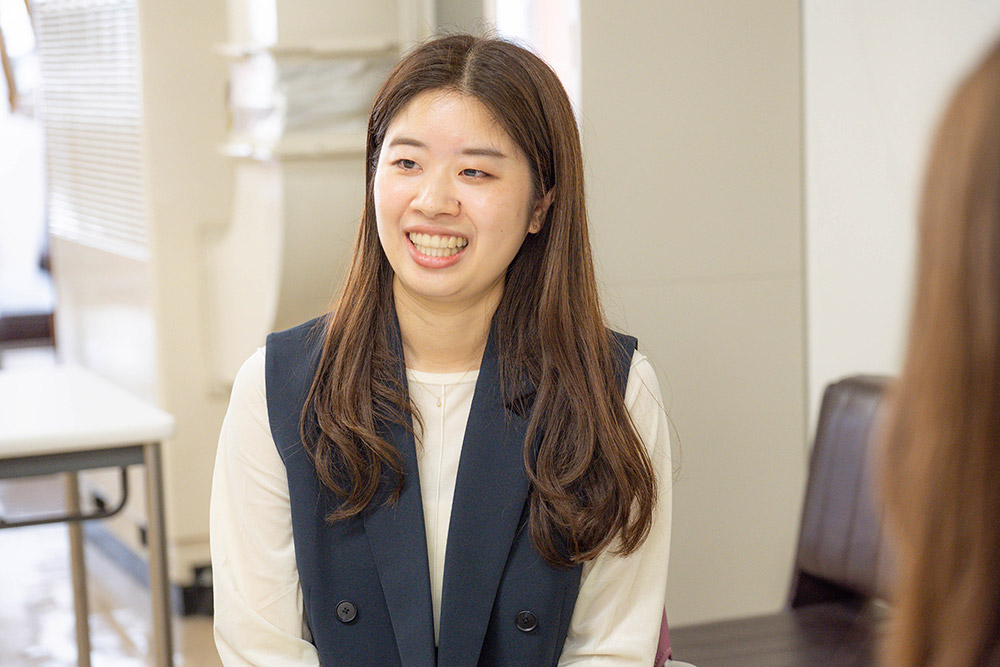 飯塚さん:私も食べることが好きで、食について学びたいと思い家政学部食物学科を選びました。大学入学後は飲食店でアルバイトを始めたこともあり、さらに食へ興味が深まりました。現在は食品学・食品包装学研究室に所属し、学びを深めています。