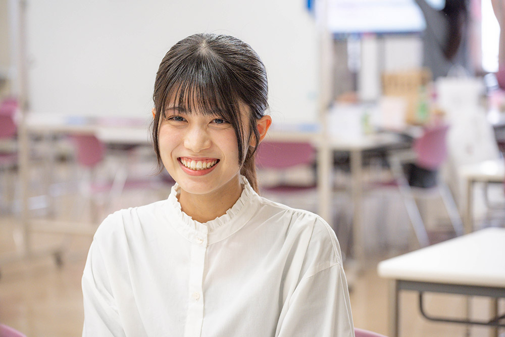 佐藤さん:他大学の大学院に進学し、水産物や海産物に含まれる食品成分が体内でどのように作用するのかを研究したいと考えています。食物学科では公衆栄養学研究室に所属し、地域の方々と関わりながら食育やフードパントリーについて学ぶ中で、食と健康のつながりを強く実感しました。これまでは「食を伝えること」に重点を置いてきましたが、大学院ではより科学的な視点から食を探究したいと思います。将来は、食を通して人々の健康や生活に貢献できる仕事に就きたいです。
