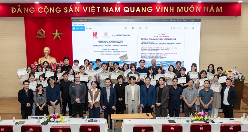 日本女子大学建築デザイン学部とホーチミン市建築大学および野村不動産株式会社(以下、野村不動産)が共催した国際ワークショップに、学部生4名と大学院生7名が参加しました。国際ワークショップは、3月9日(月)から18日(水)までの10日間にわたりベトナム・ホーチミン市で行われ、両大学から計31名の学生が参加しました。