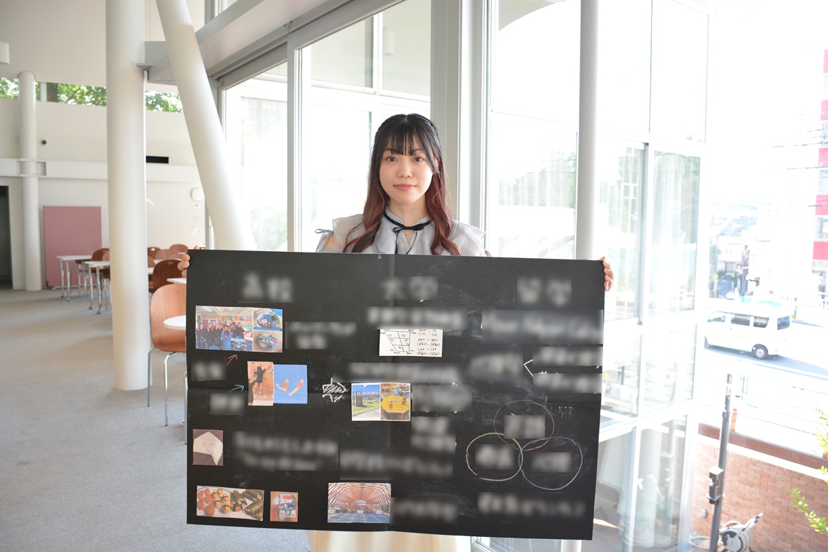 プレゼンテーションでは、OGからの「印象を残すことが大事」というアドバイスをもとに方法を考え、教育について探求したいというイメージをつけるためにも黒板を使うことにしました。原稿を読むのではなく、黒板に図を書いたり資料を貼ったりしながら話せるように練習しました。一般的には完成されたフリップボードを使う人が多い中で、黒板は面接官の記憶に残ったのではないかと思います。