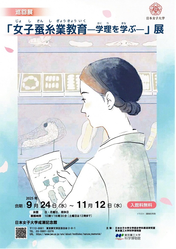なお、この巡回展は、官営の中央教育研究機関であった蚕業講習所を前身の一つとする東京農工大学所蔵の資史料等に基づいて行なわれた共同研究の成果の一部であり、同大科学博物館で実施された企画展に本学関係の史料を加えご紹介する連携展示です。