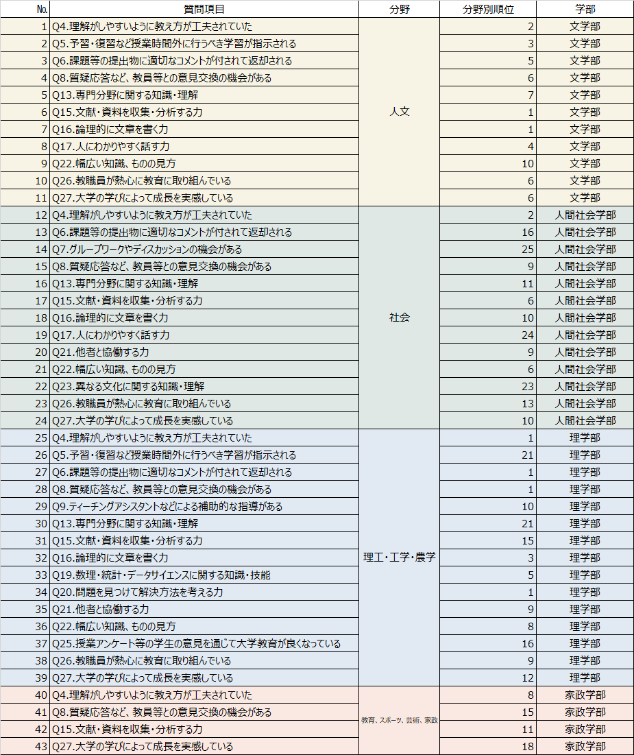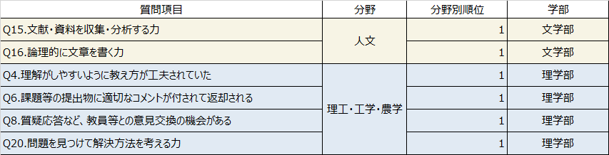 文部科学省が9月30日(火)に公表した令和6年度「全国学生調査(第4回試行実施)」のポジティブリストにおいて、本学は複数の学部の計6項目で1位を獲得しました。全体で43項目で上位にランクインしています。
